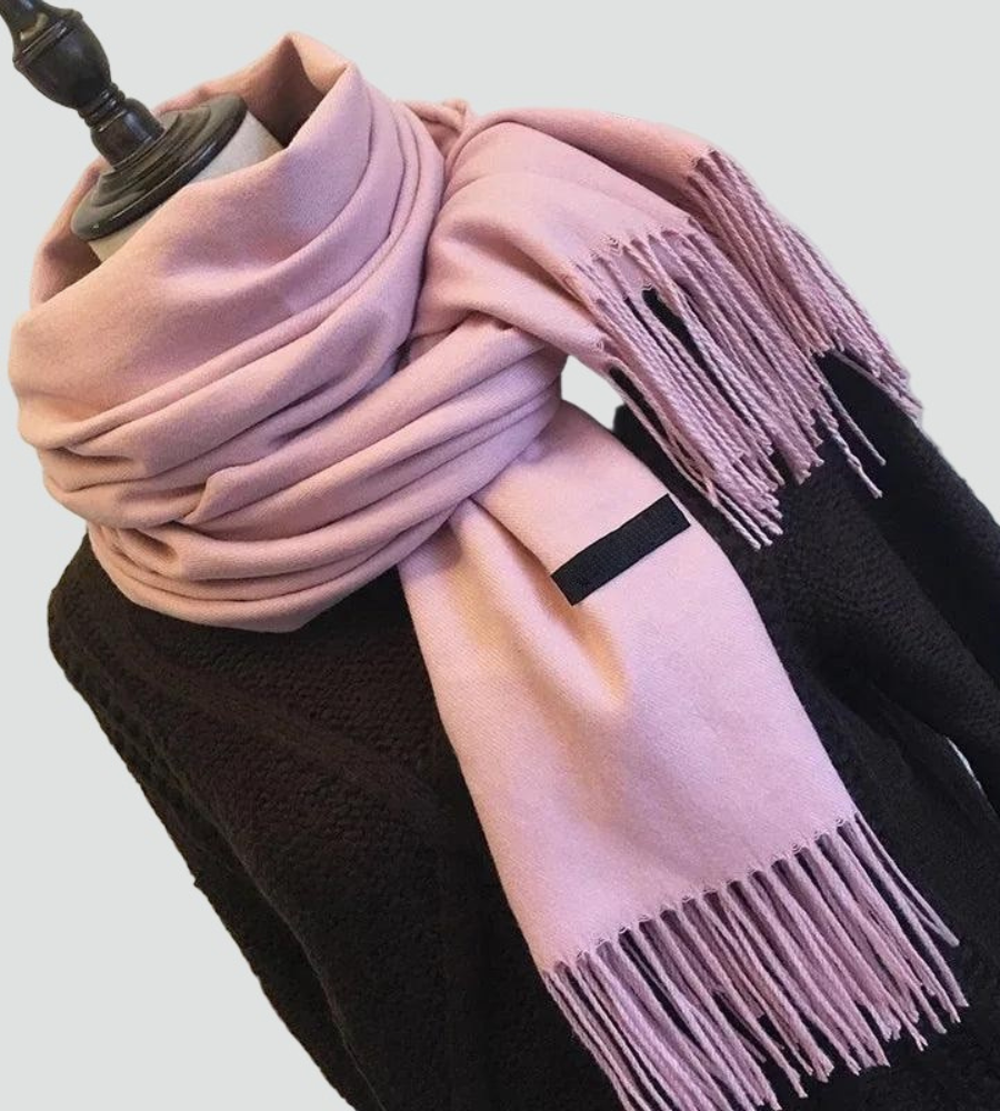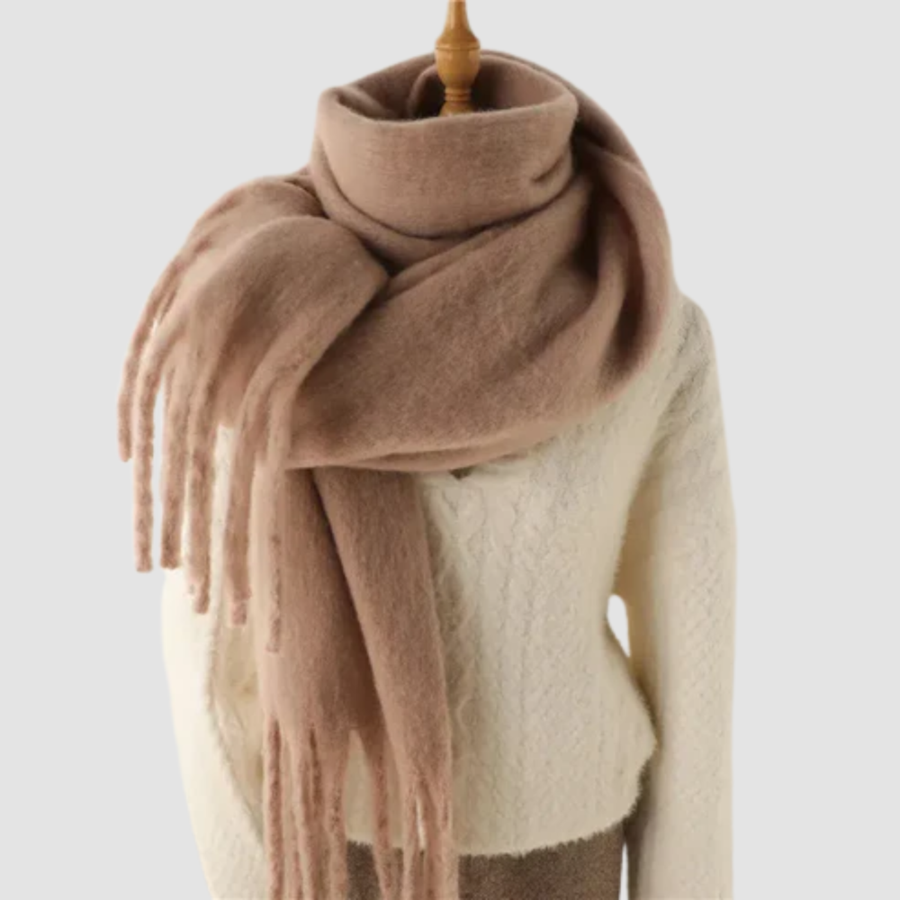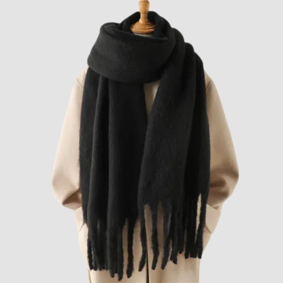 Puszysty zimowy szal damski oversize z długimi frędzlami