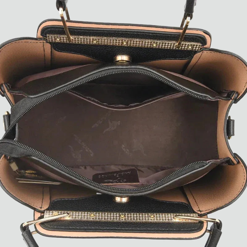 • Pojemne wnętrze z kilkoma przegródkami ułatwia zachowanie porządku w dokumentach, kosmetykach i drobiazgach