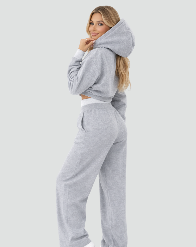 Damski casualowy komplet dresowy z bluzą z kapturem i szerokimi spodniami