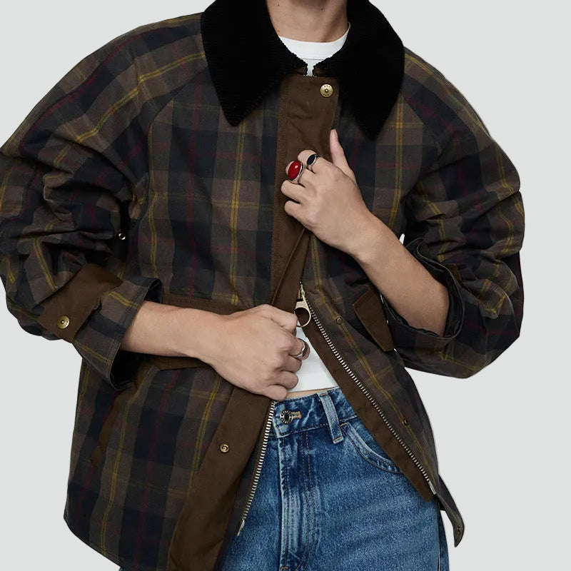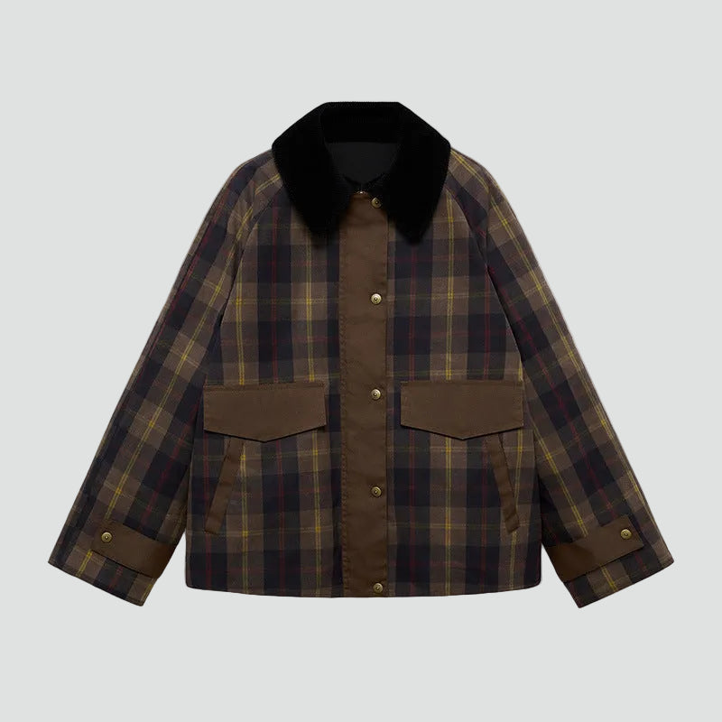 Damska bomberka w kratę z kołnierzem i kieszeniami