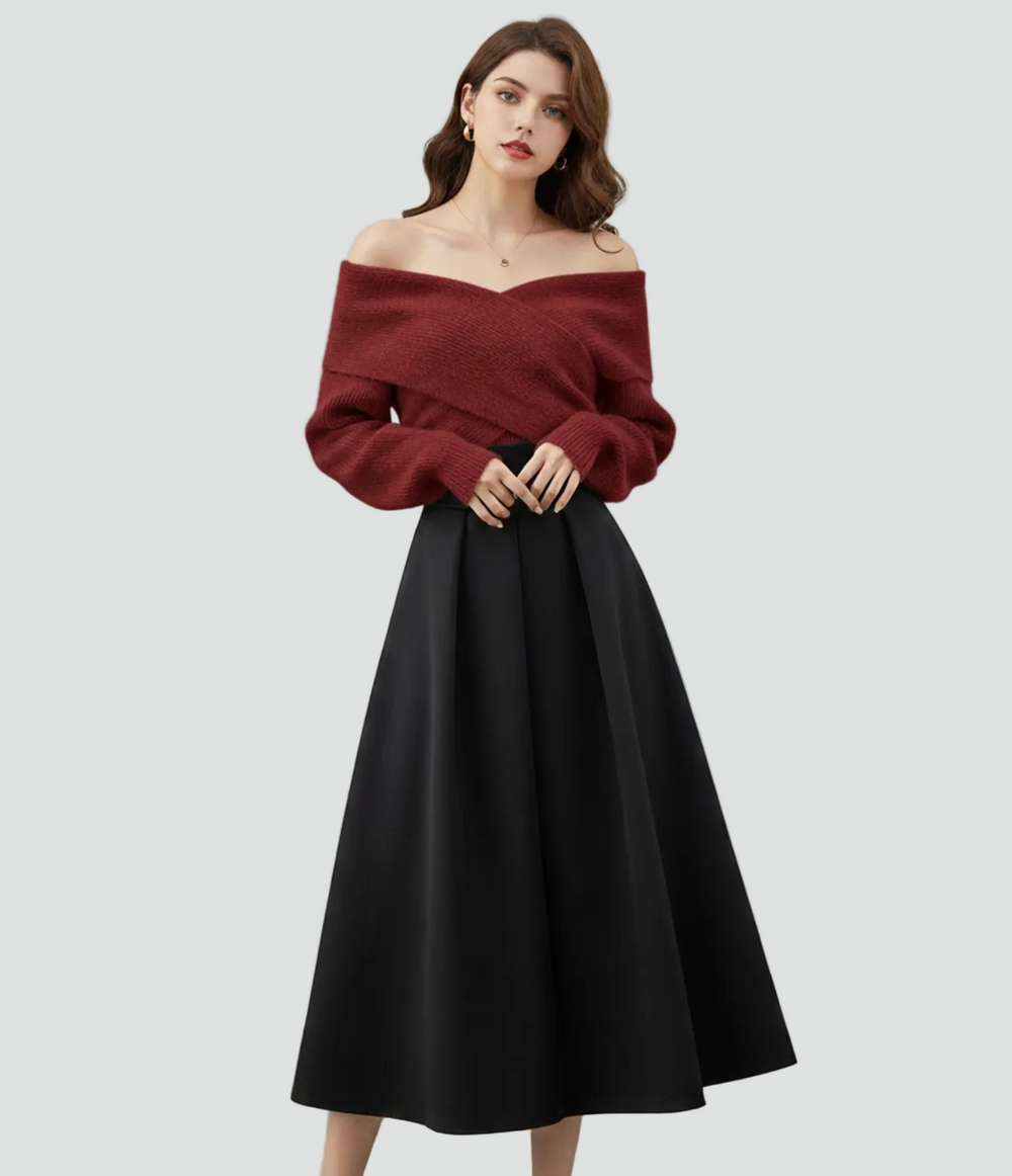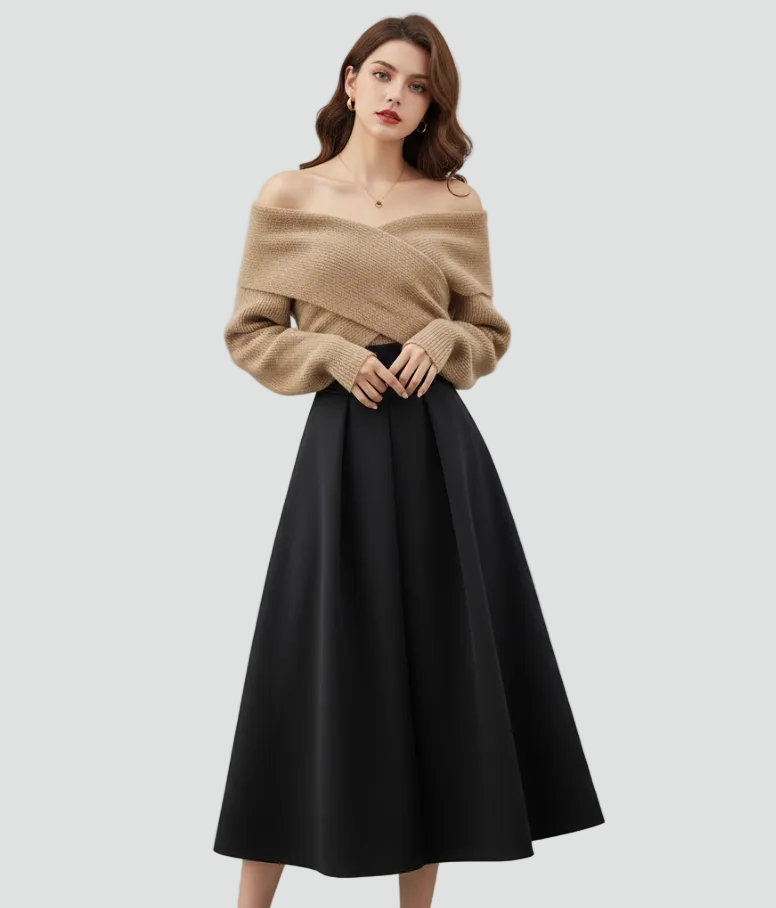 Elegancki komplet damski ze spódnicą midi i swetrem