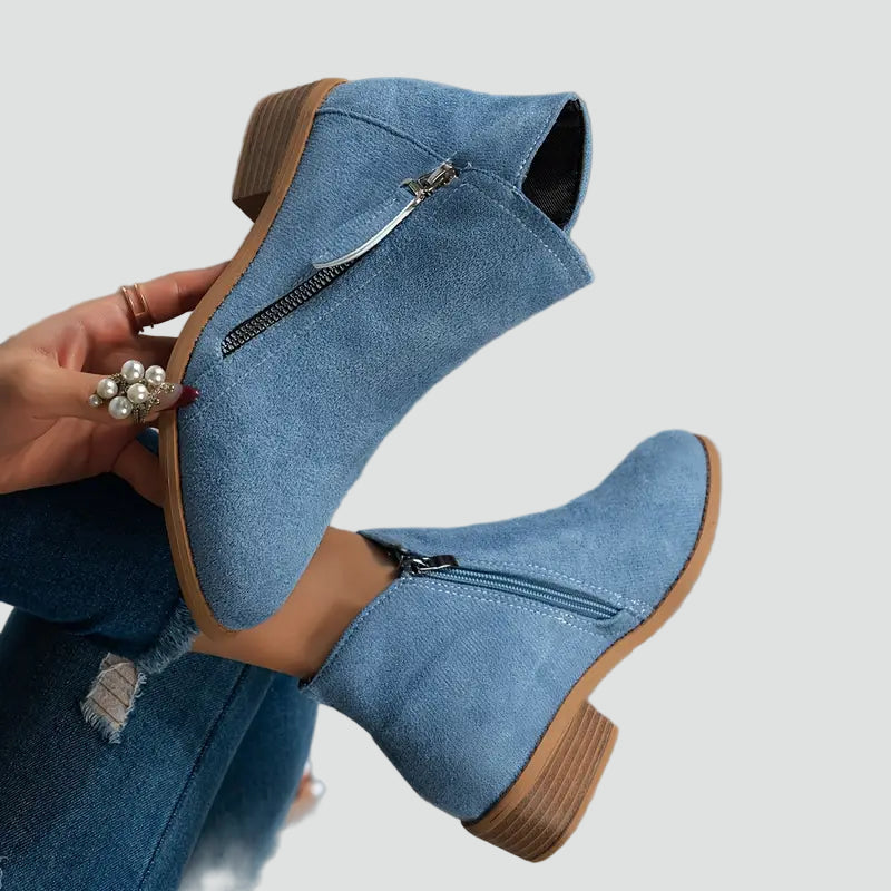 Modne damskie botki zamszowy look z bocznym suwakiem