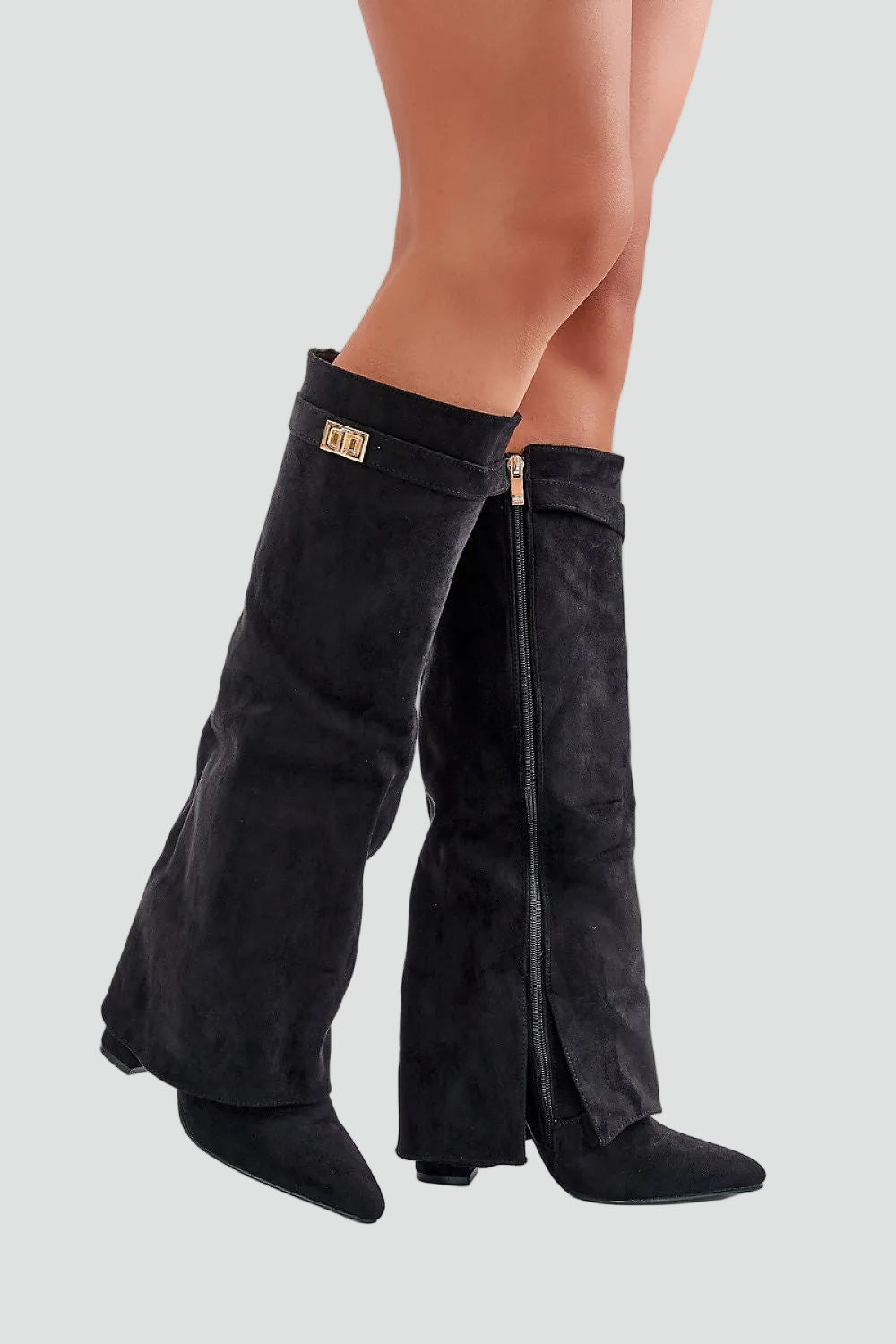 Stylowe kozaki damskie do kolan zamszowy look