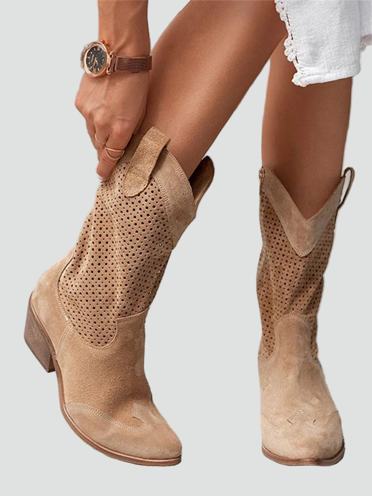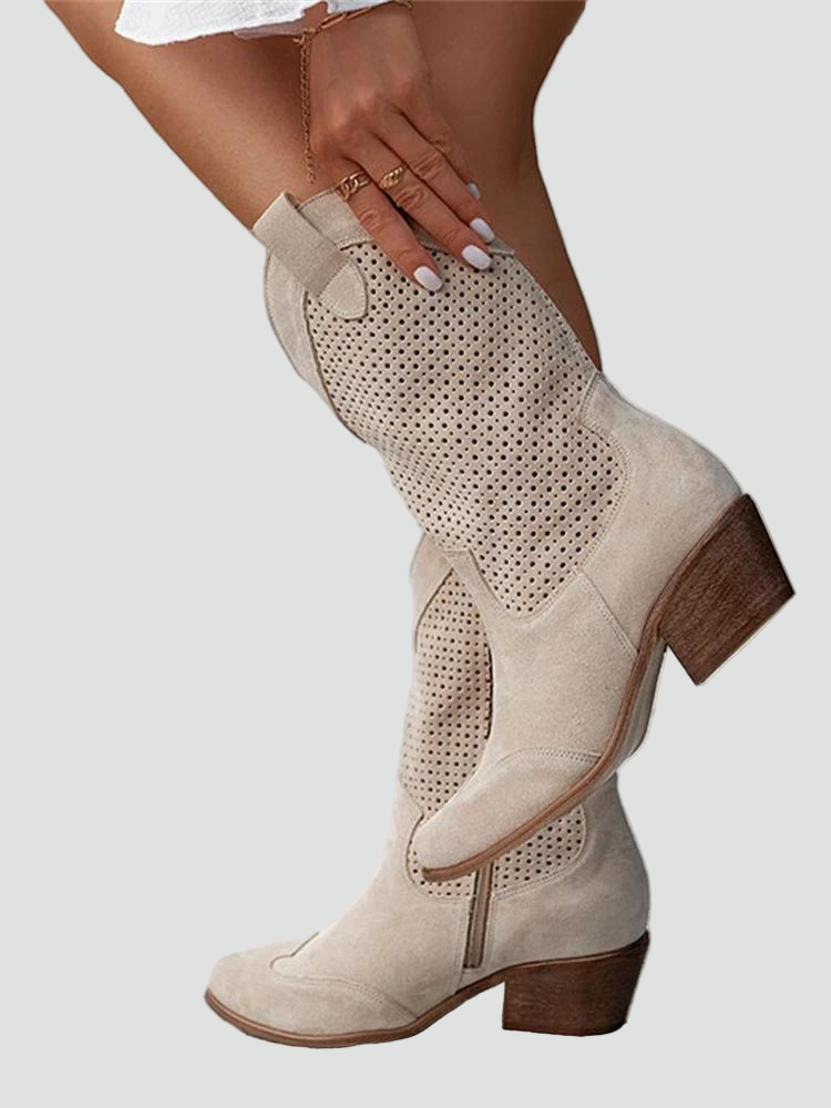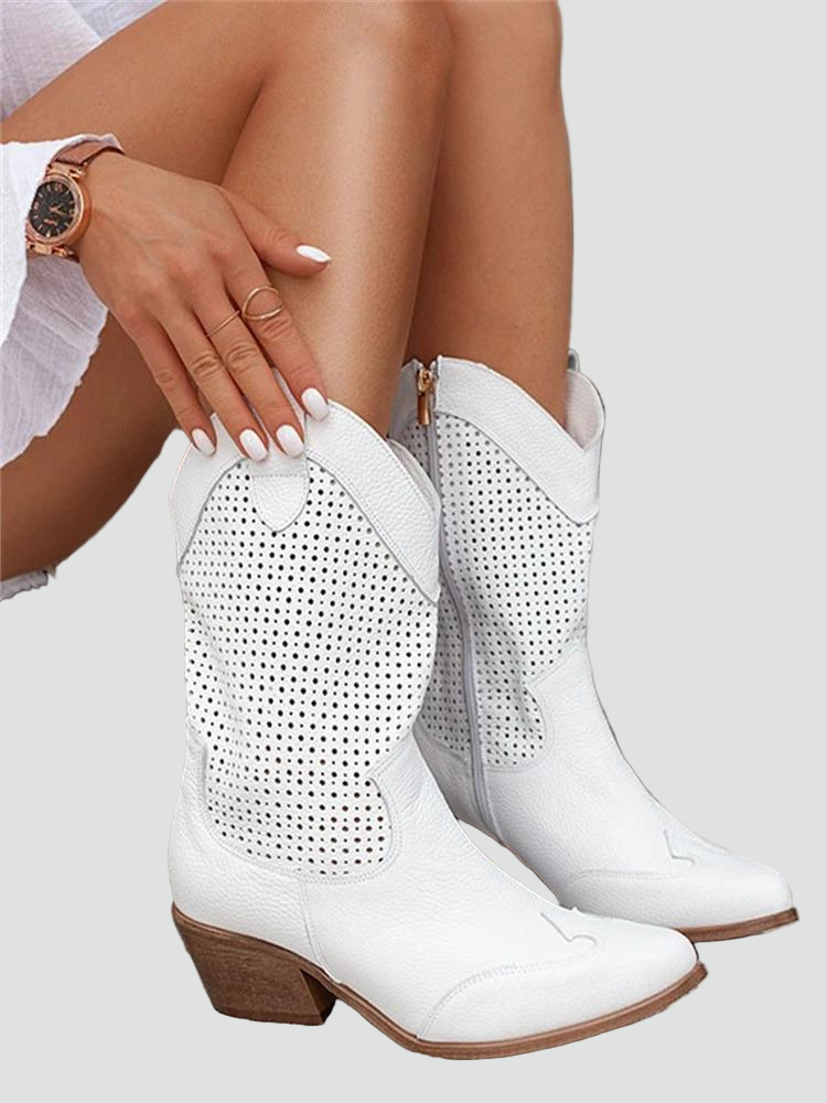 Ażurowe kowbojki damskie na obcasie wiosenne
