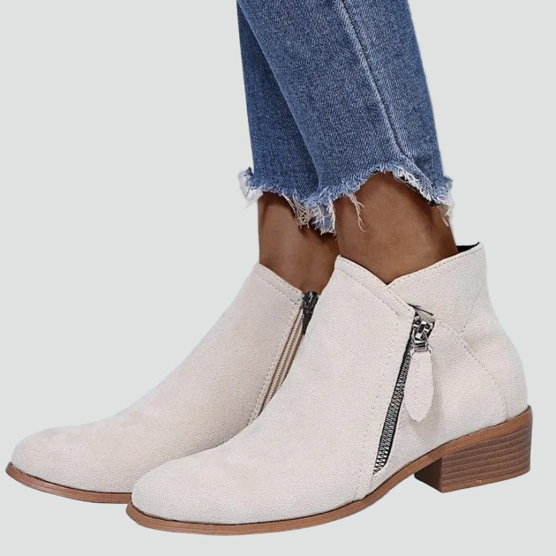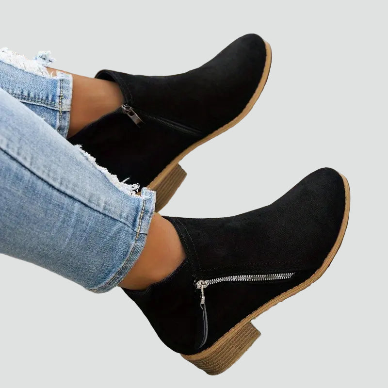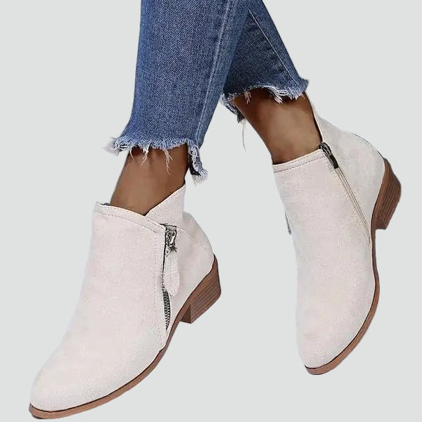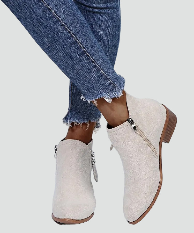 Modne damskie botki zamszowy look z bocznym suwakiem