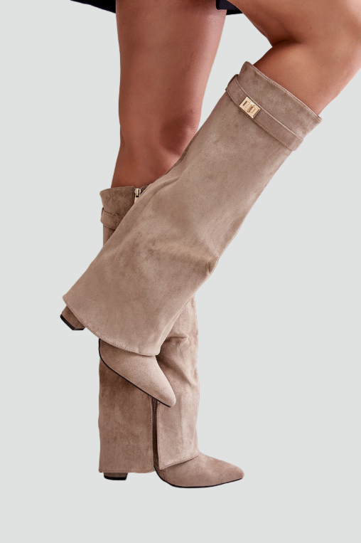 Stylowe kozaki damskie do kolan zamszowy look