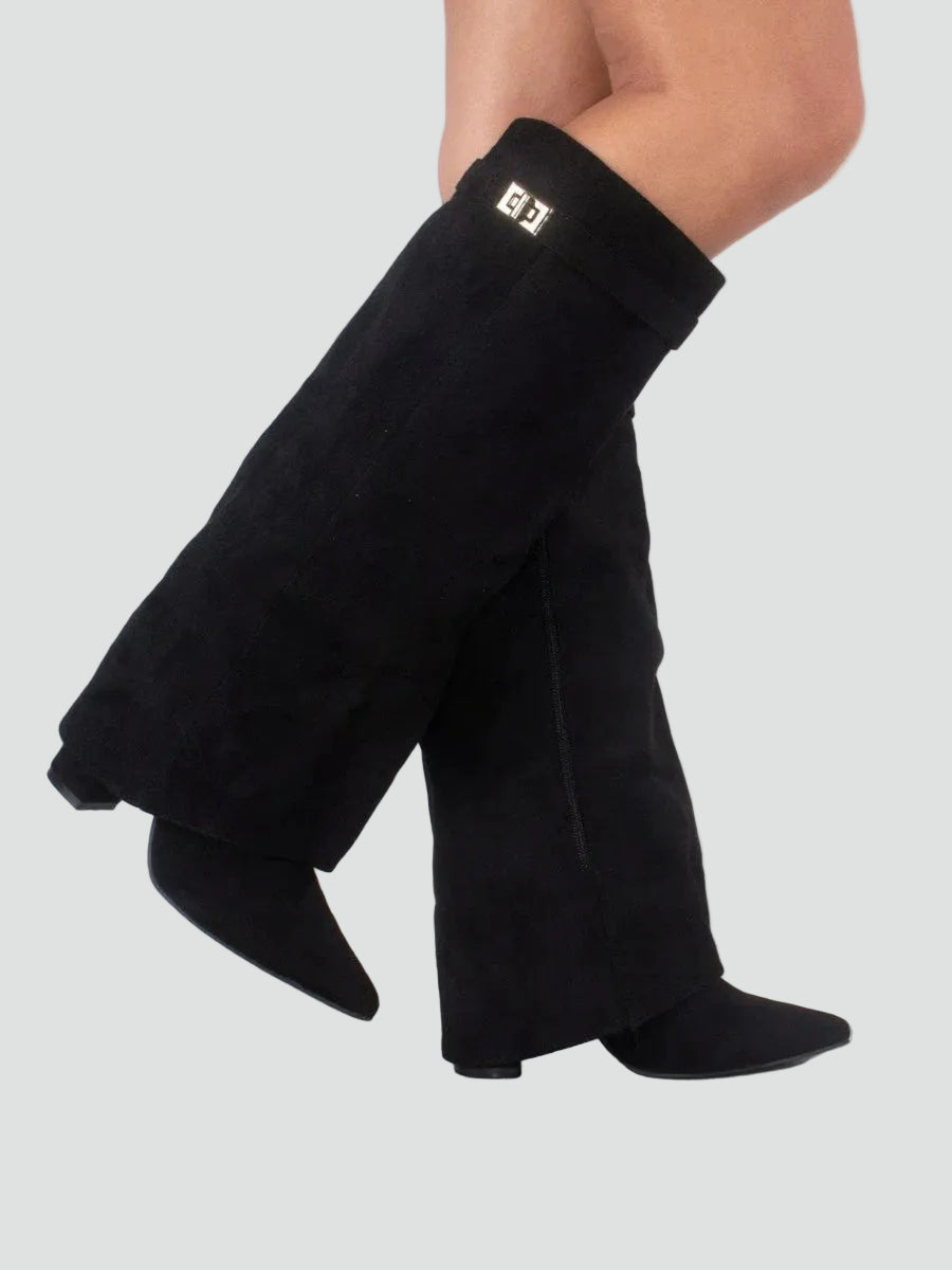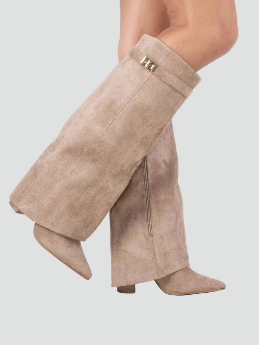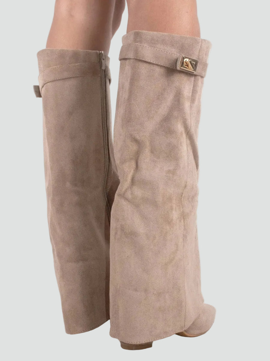 Zamszowe kozaki damskie knee-high z szeroką cholewką