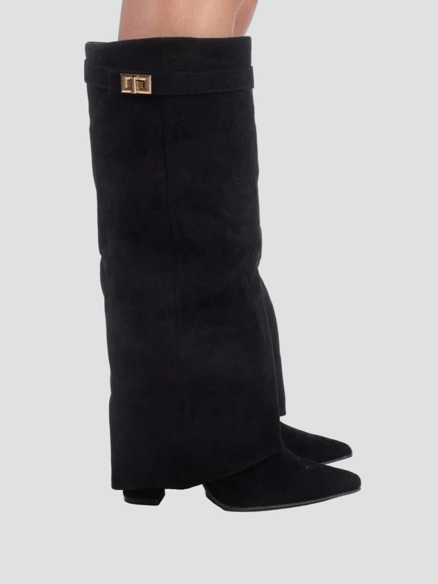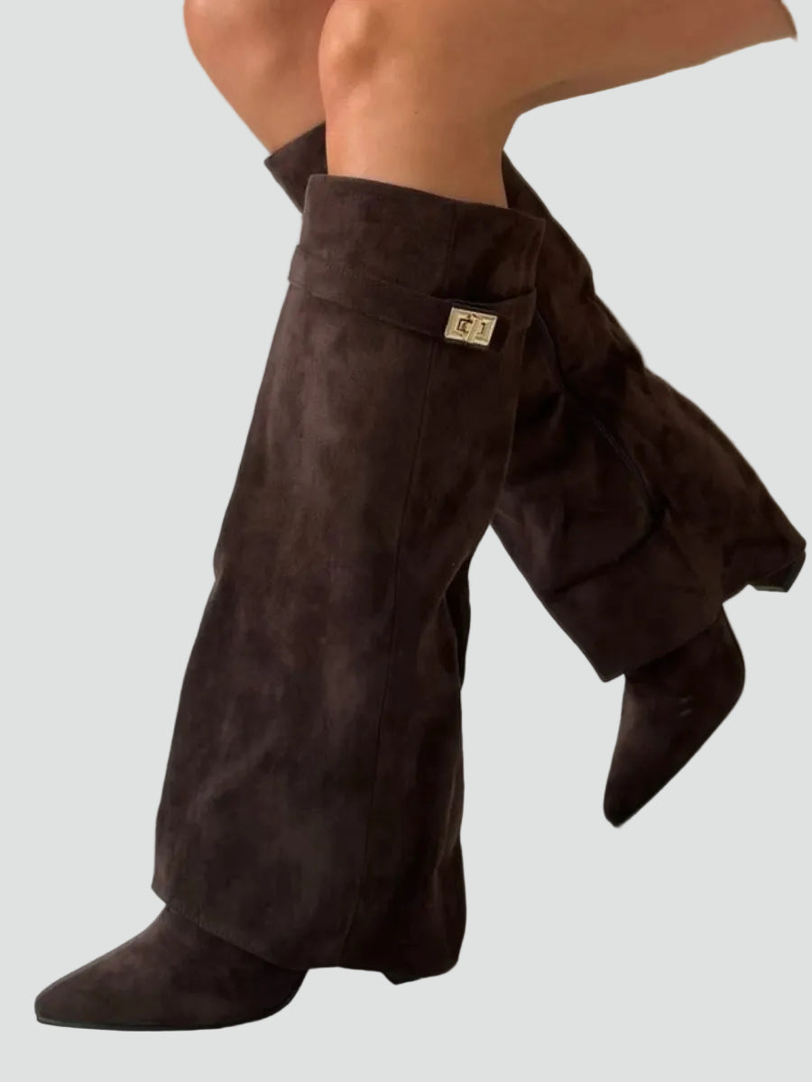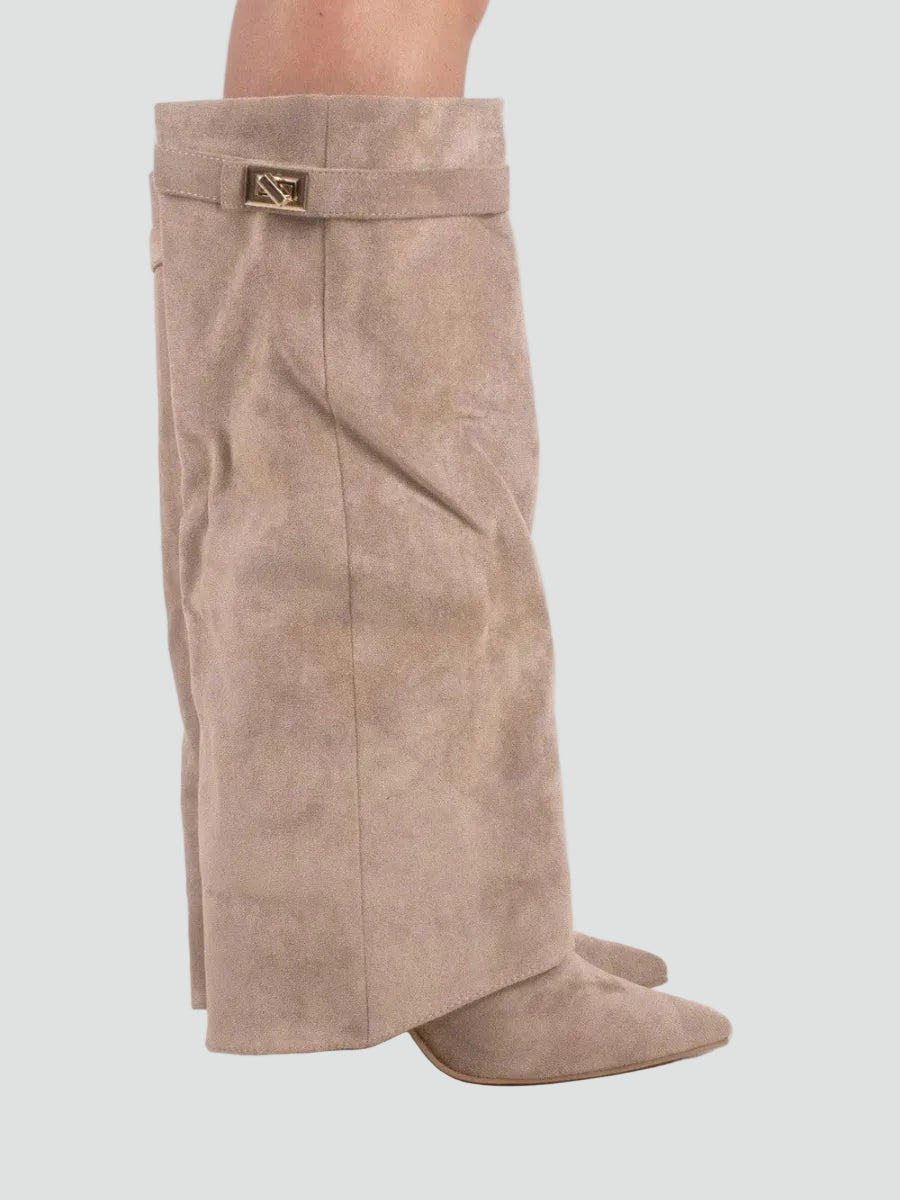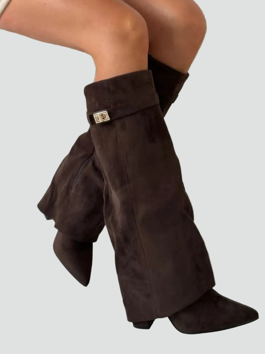 Zamszowe kozaki damskie knee-high z szeroką cholewką