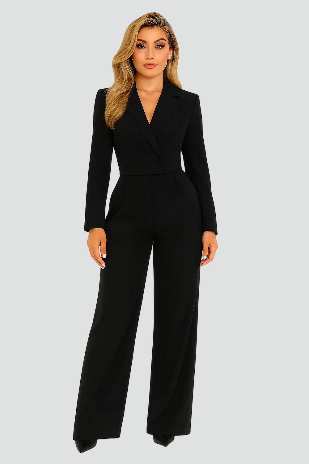 Elegancki damski kombinezon garniturowy z szerokimi nogawkami
