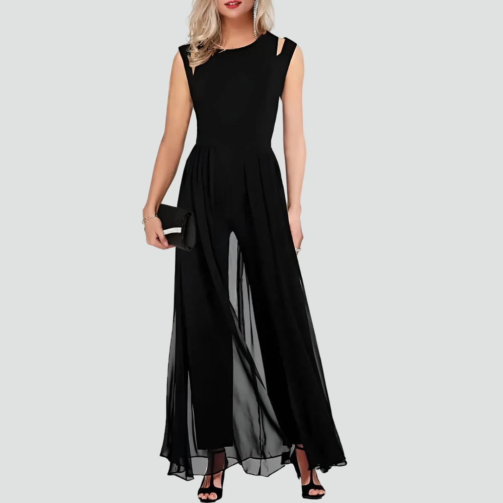 Damski elegancki kombinezon wieczorowy bez rękawów z szerokimi nogawkami