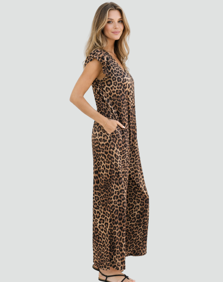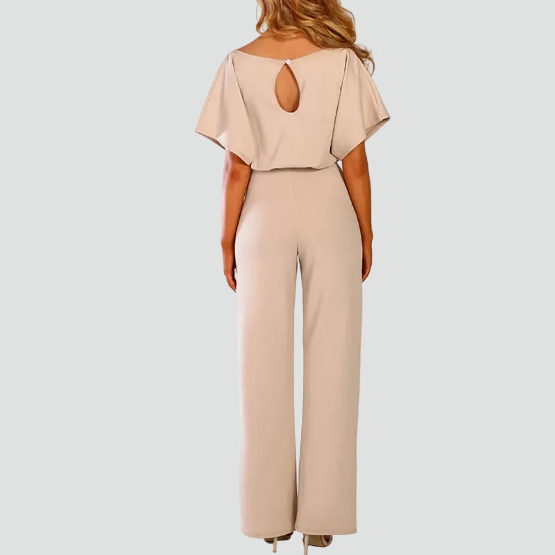Elegancki damski kombinezon z dekoltem V i paskiem w talii