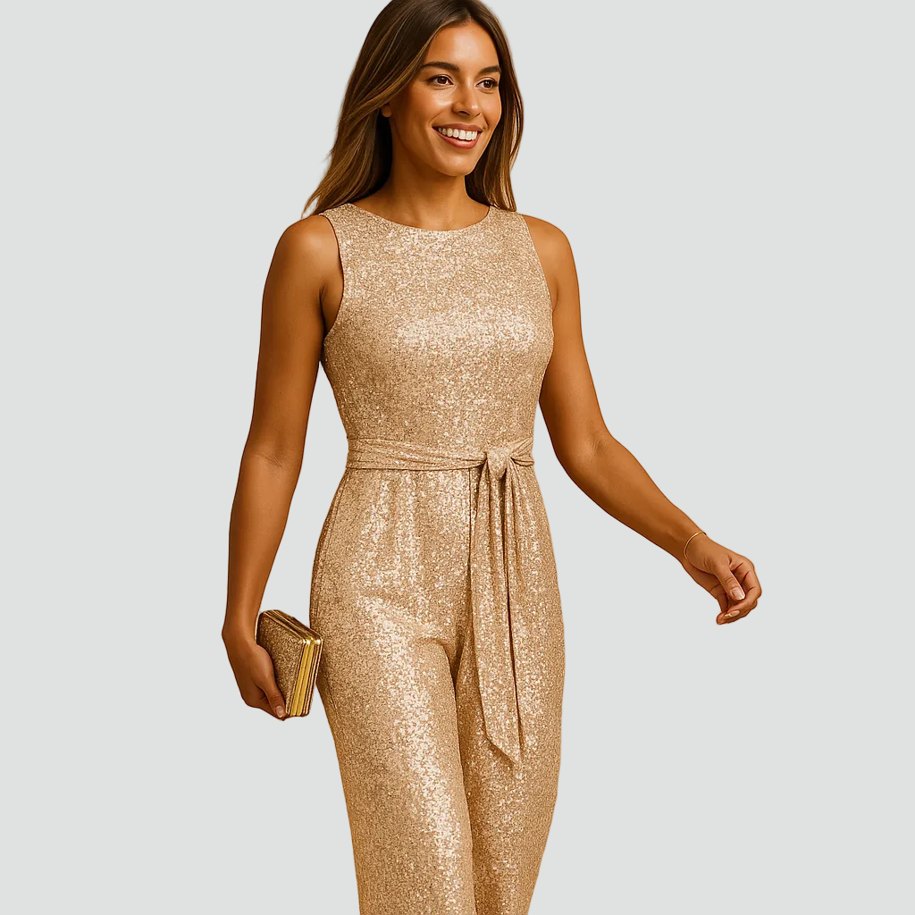 Elegancki kombinezon damski bez rękawów z cekinowym wykończeniem