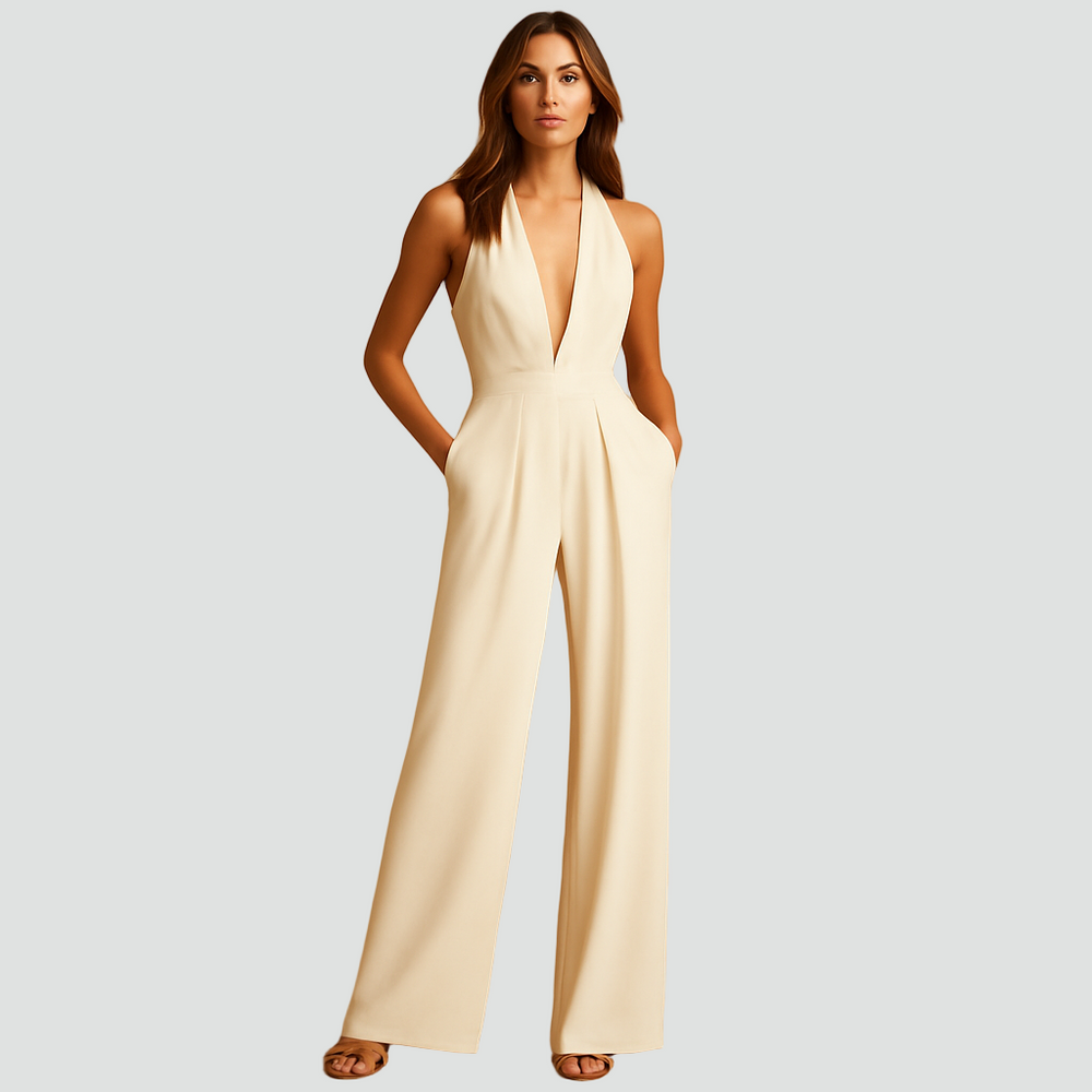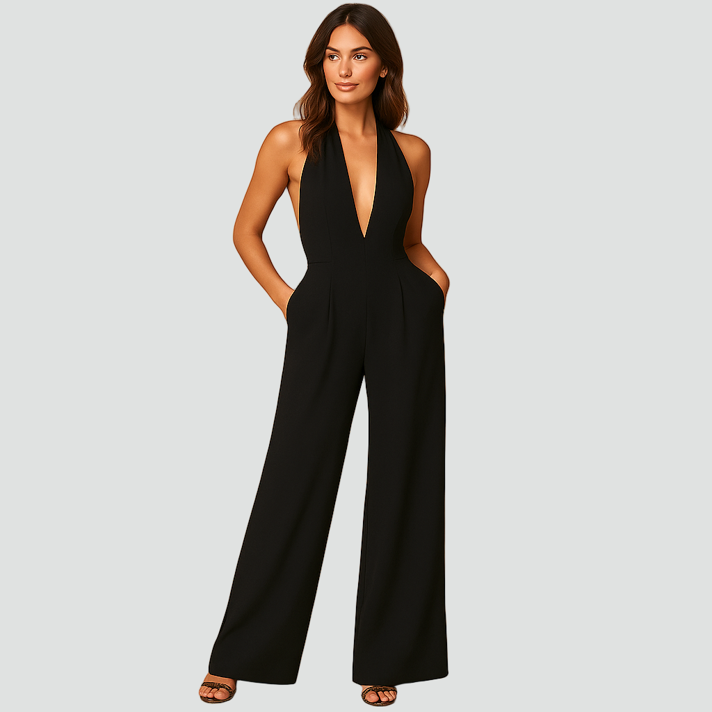 Kombinezon halter z dekoltem i odkrytymi plecami dla kobiet