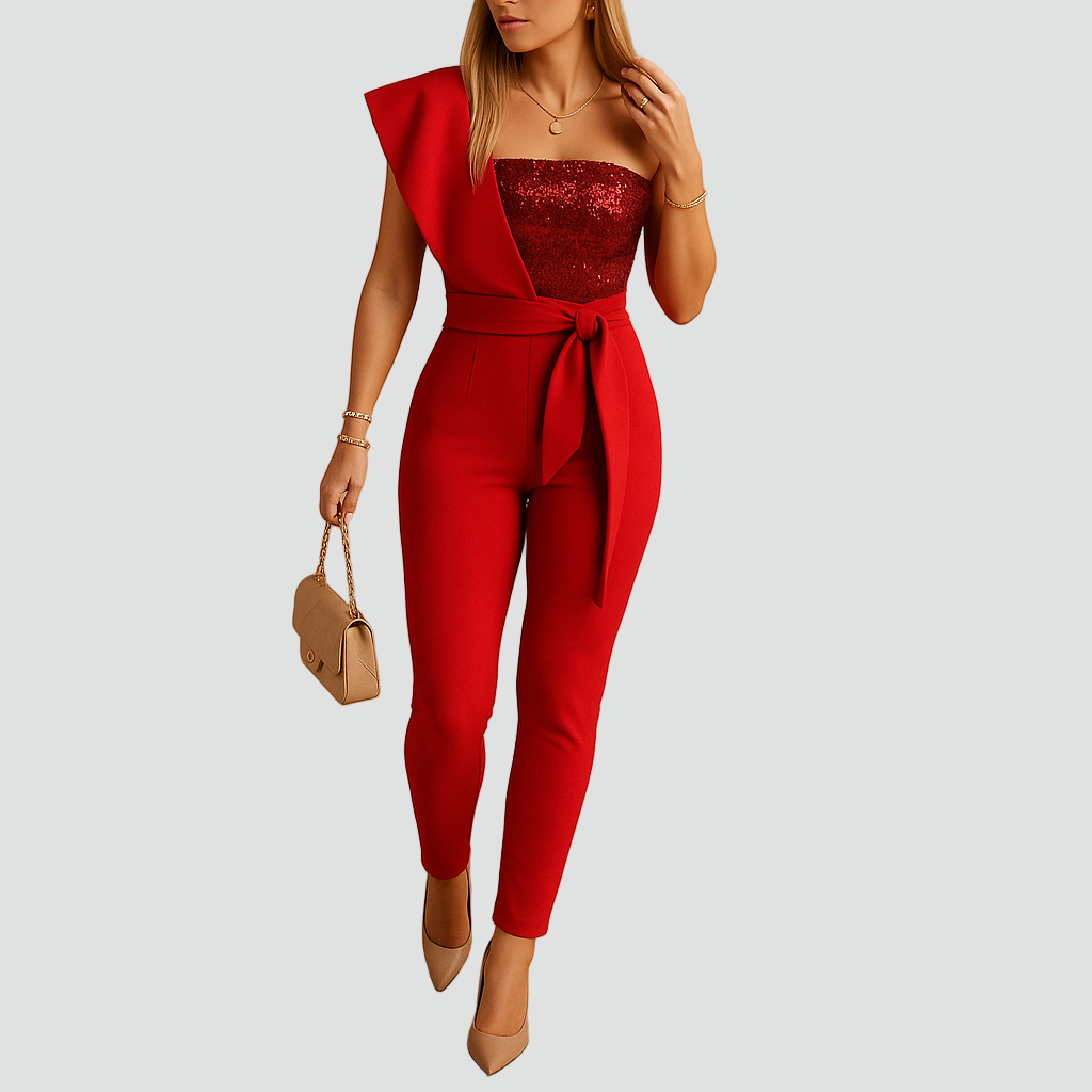 Asymetryczny kombinezon z cekinowym gorsetem i paskiem dla kobiet