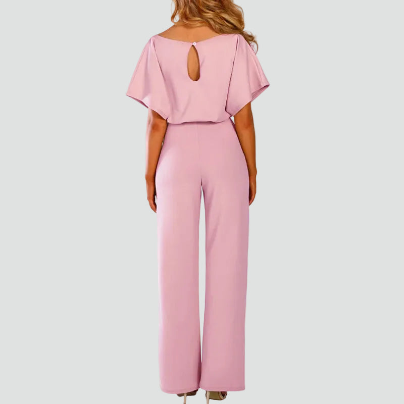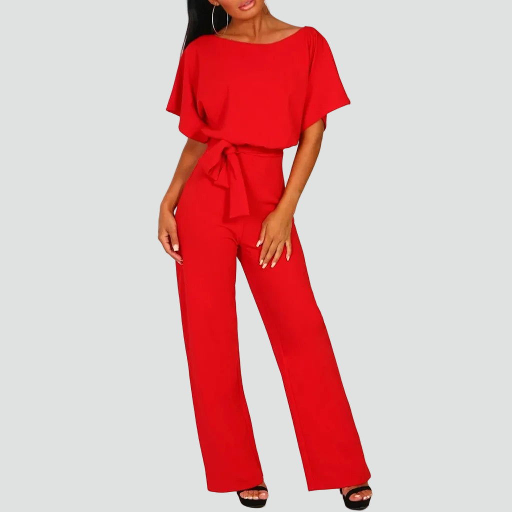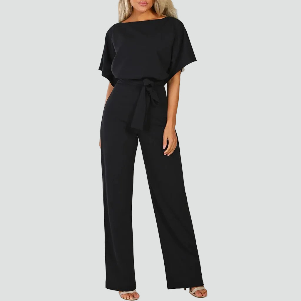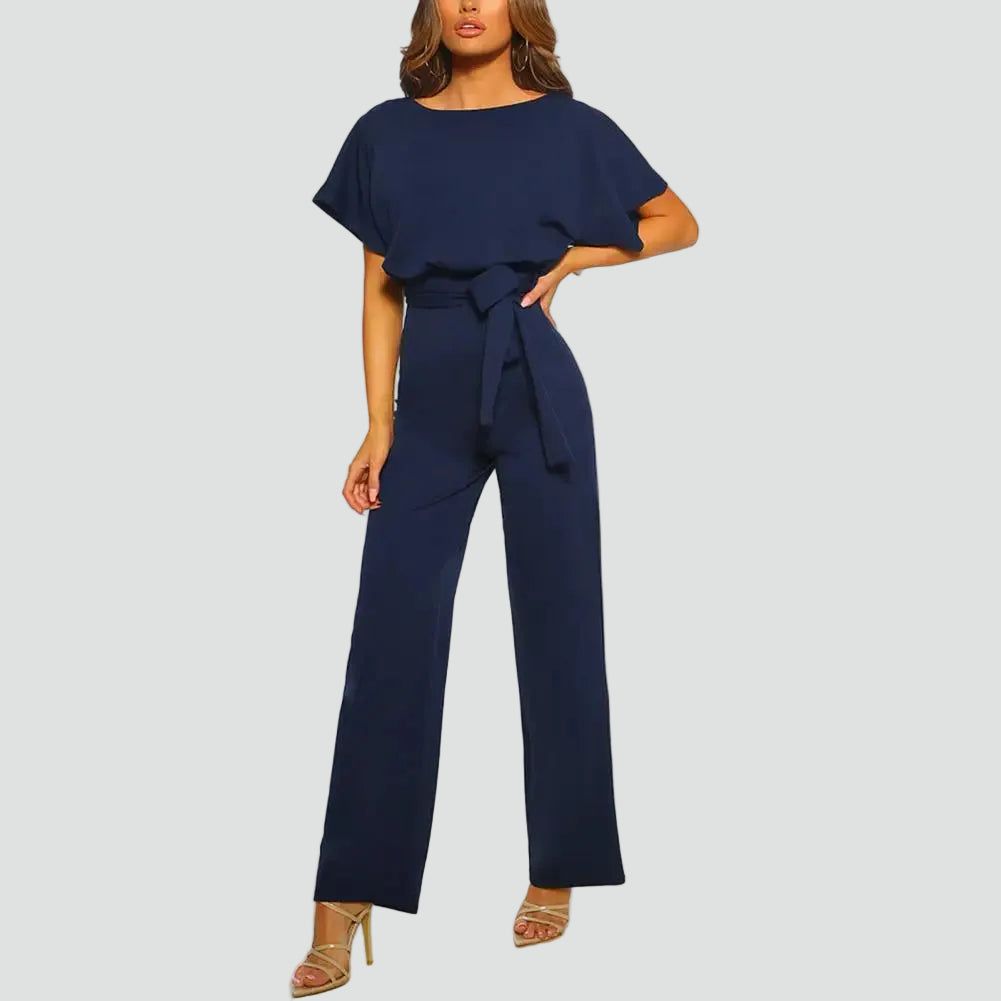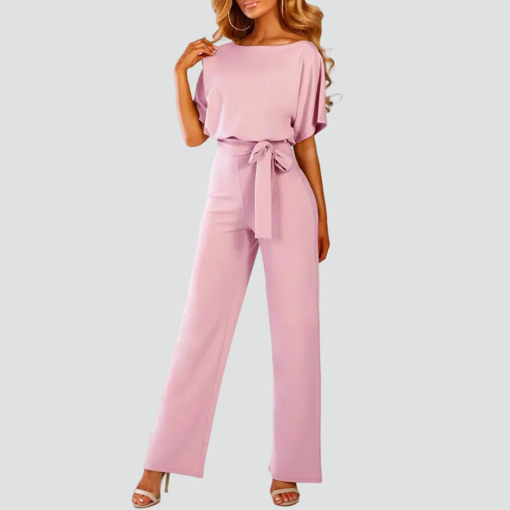 Damski elegancki kombinezon z krótkim rękawem i wiązaniem w talii