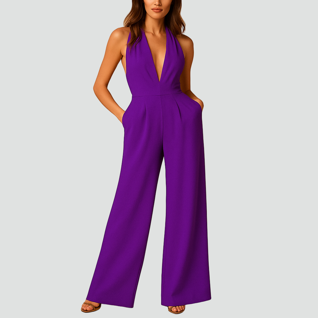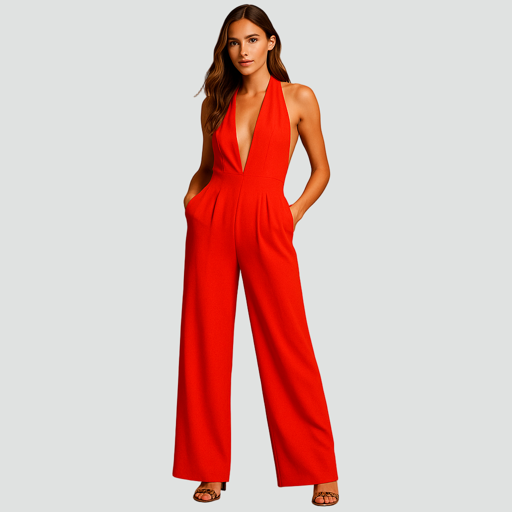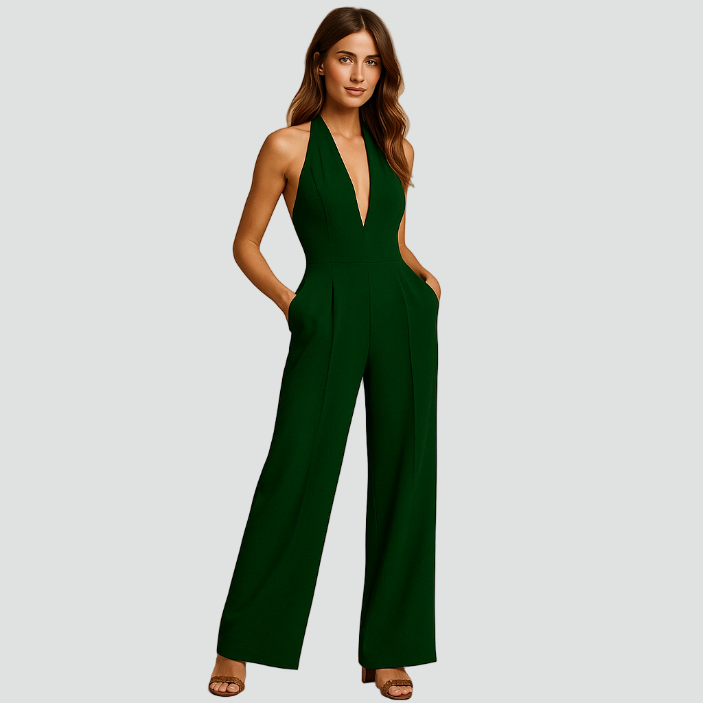 Kombinezon halter z dekoltem i odkrytymi plecami dla kobiet