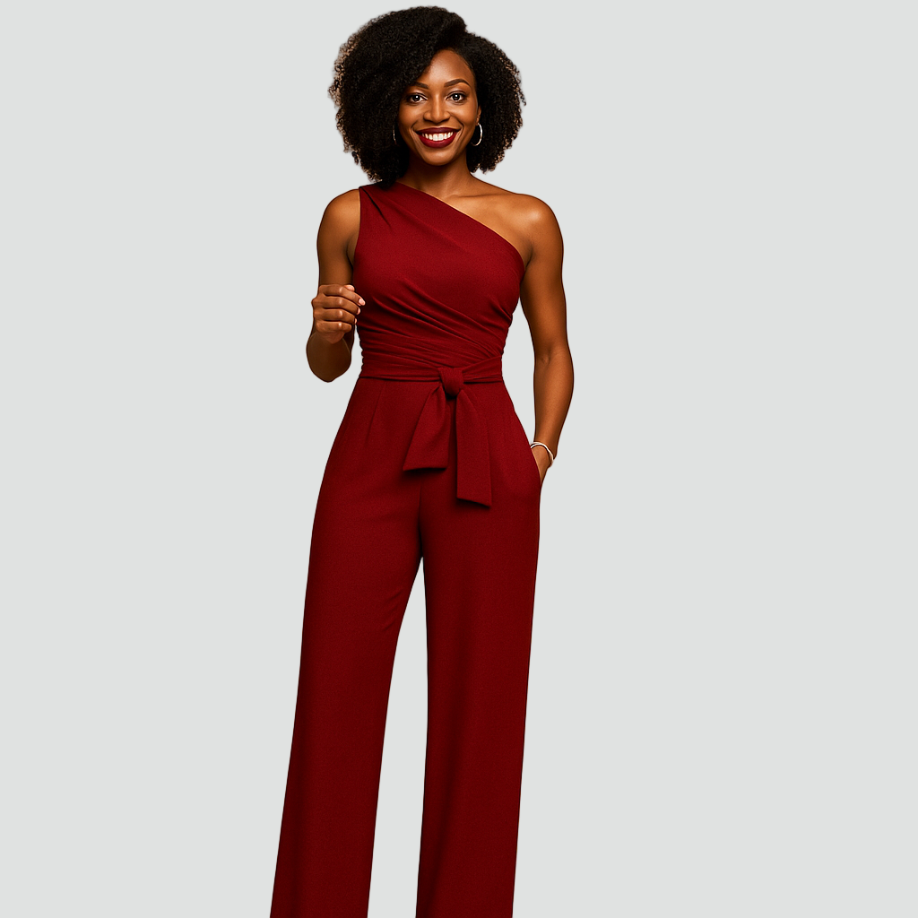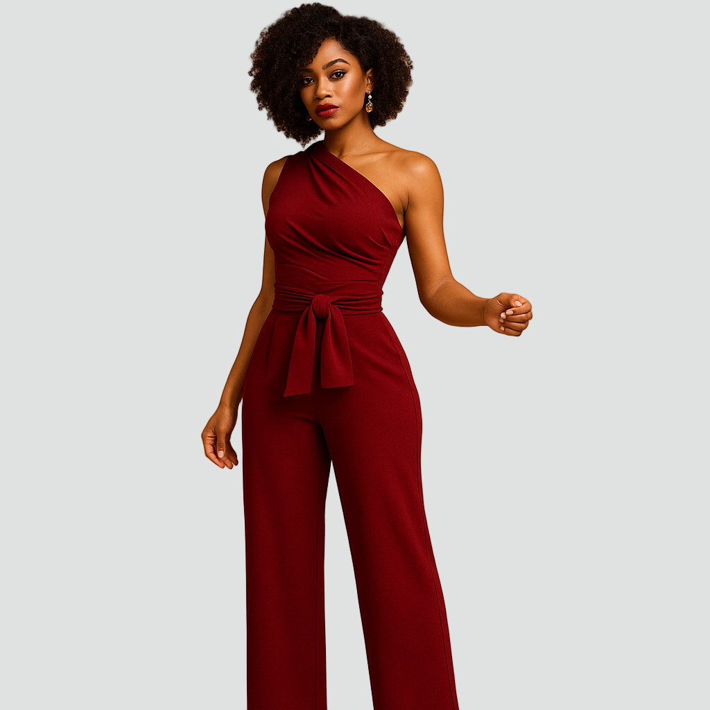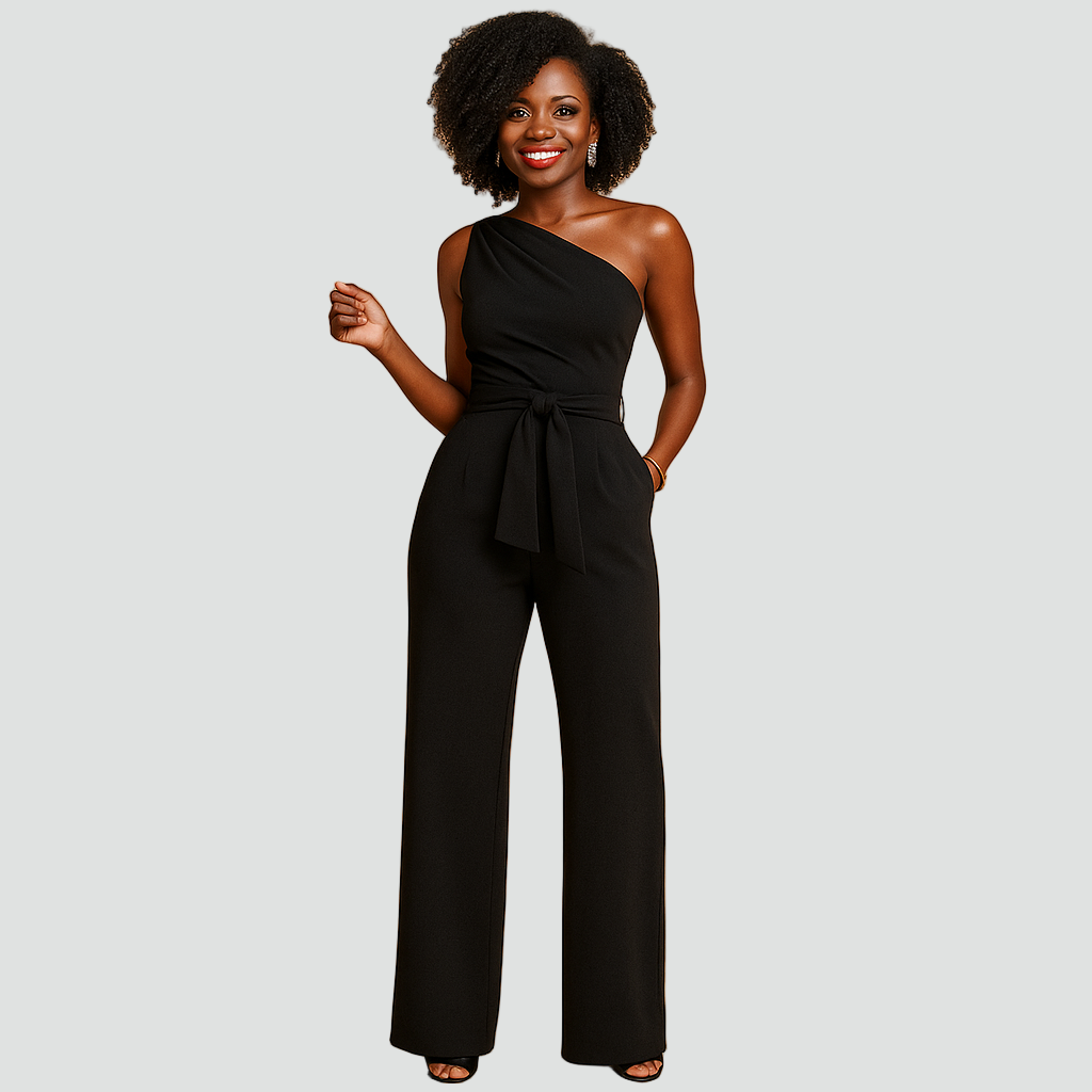 Kombinezon z odkrytym ramieniem i paskiem dla kobiet