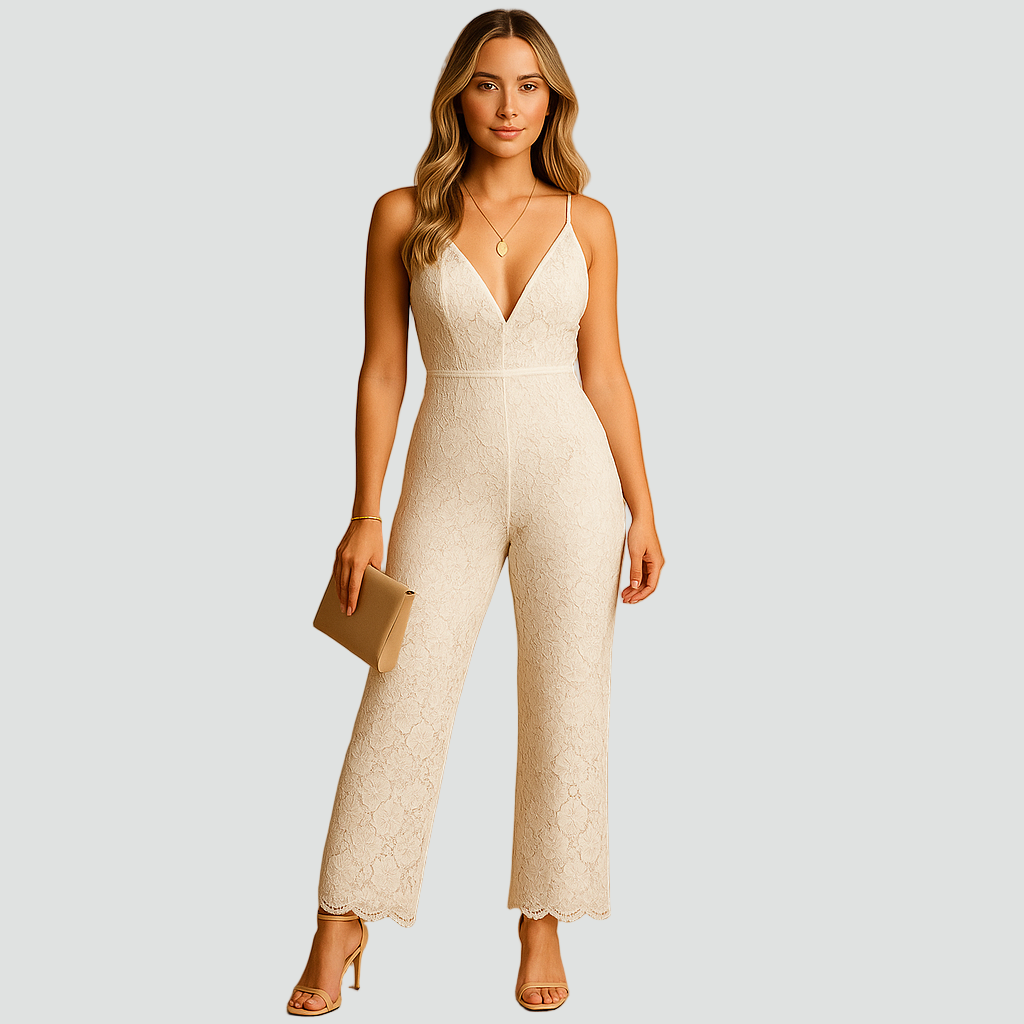 Koronkowy kombinezon z dekoltem w serek i ramiączkami dla kobiet