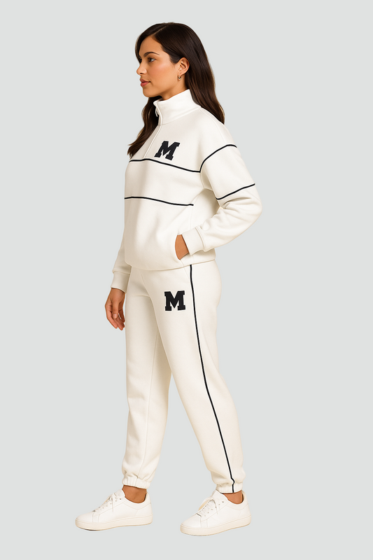 Komplet dresowy damski z krótkim swetrem i spodniami jogger