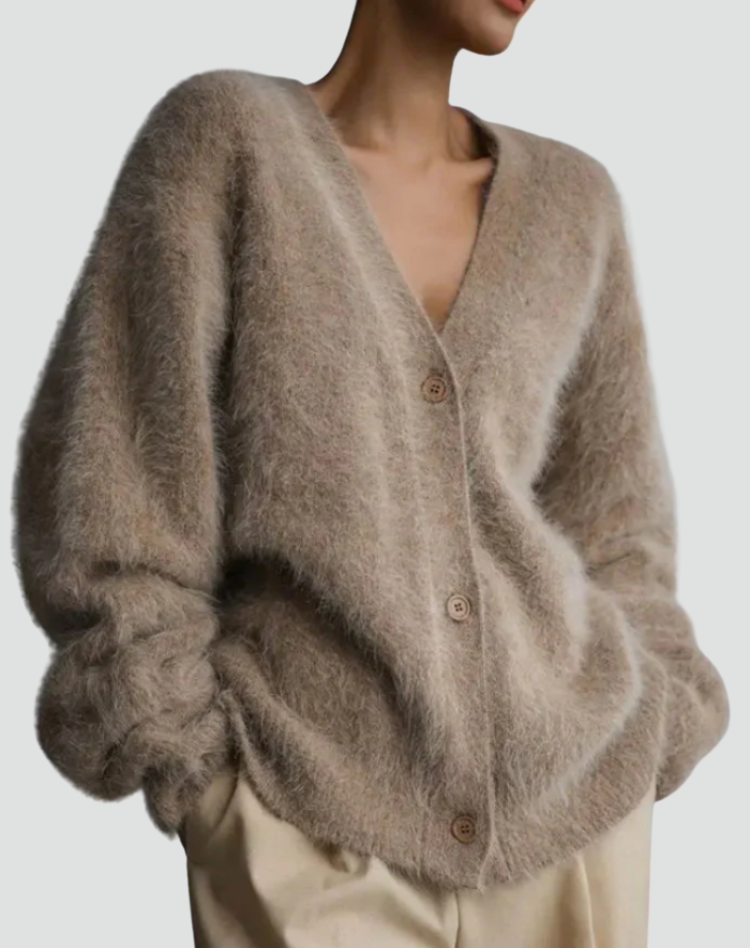 Puszysty kardigan damski oversize zapinany na guziki