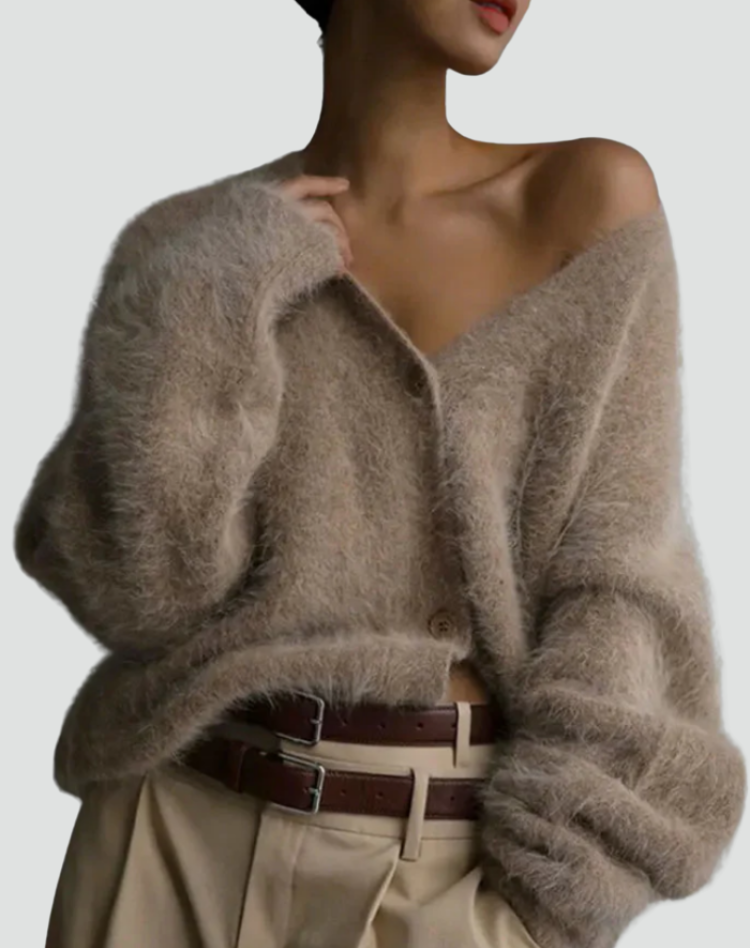 Miękki ciepły damski kardigan zapinany na guziki