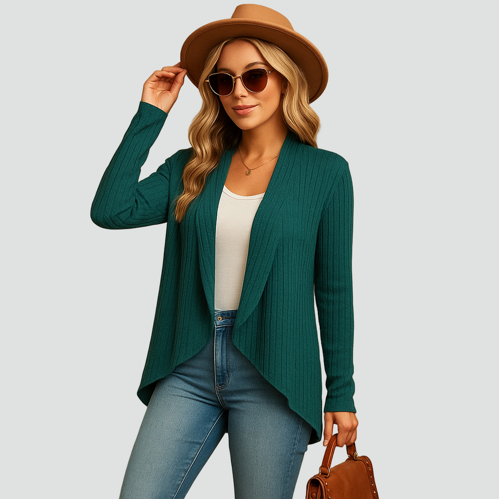 Prążkowany kardigan dla kobiet z drapowanym przodem