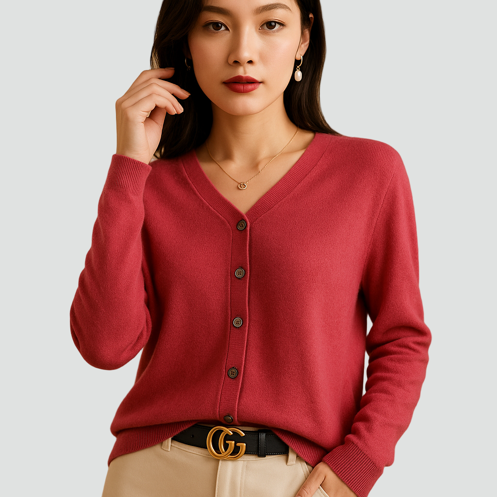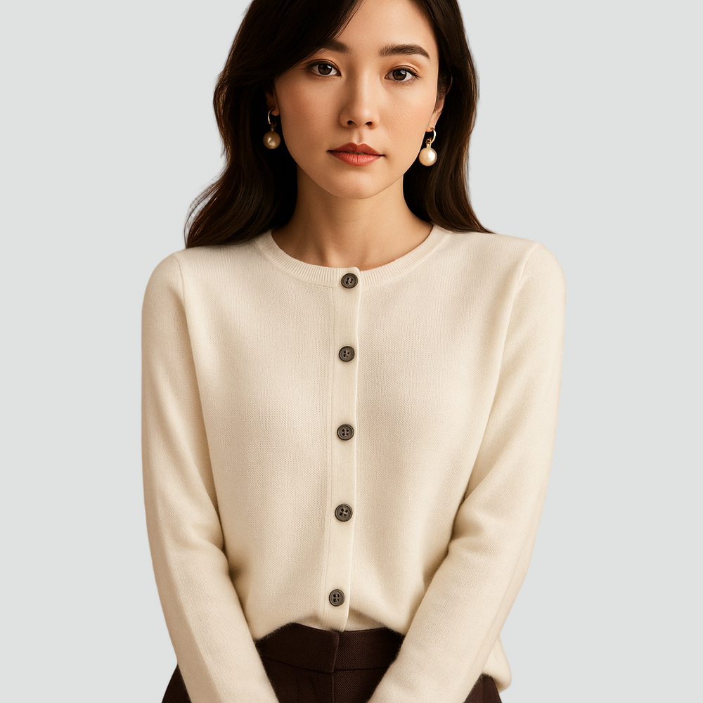 Miękki kardigan dla kobiet z okrągłym dekoltem i guzikami
