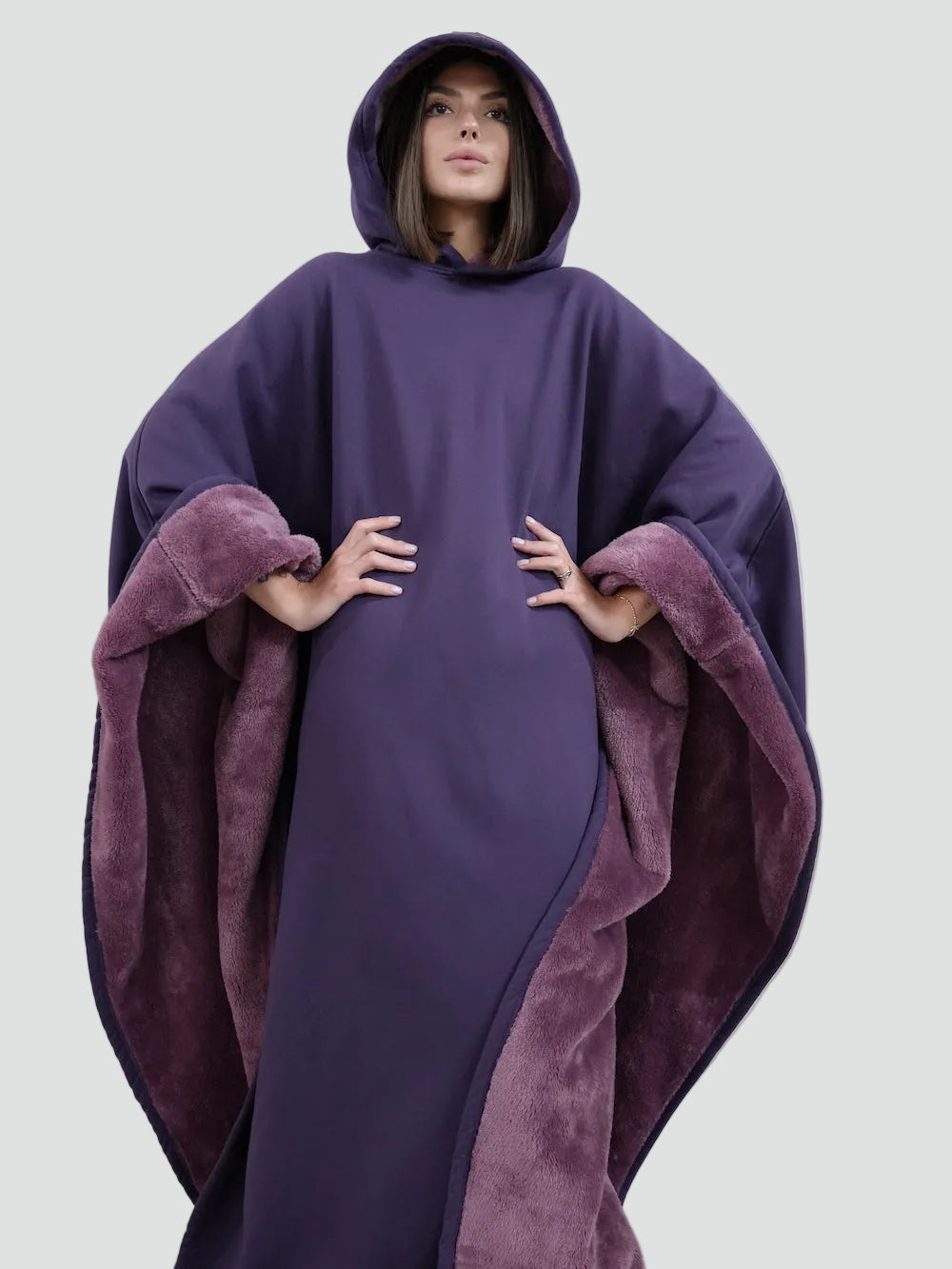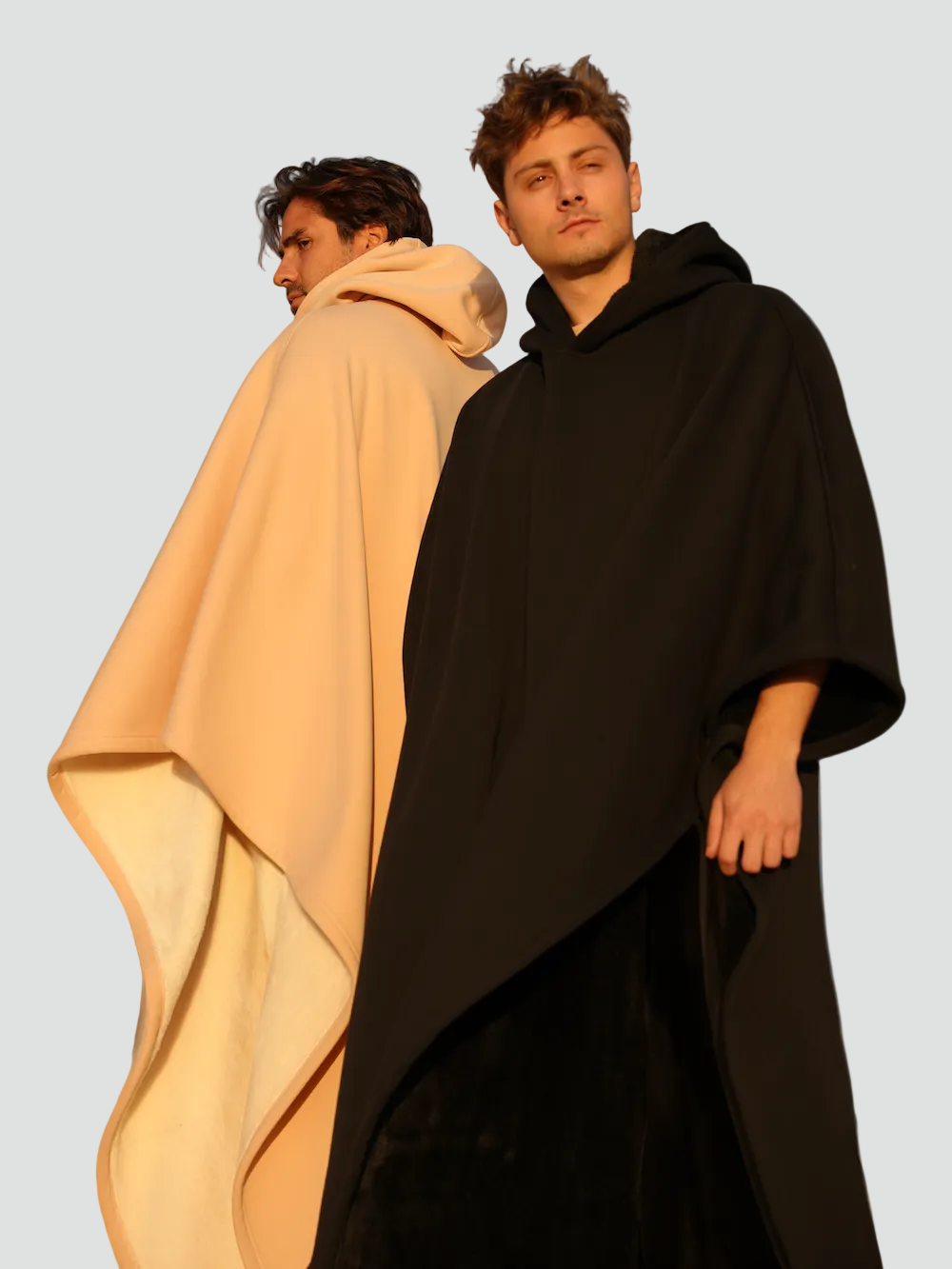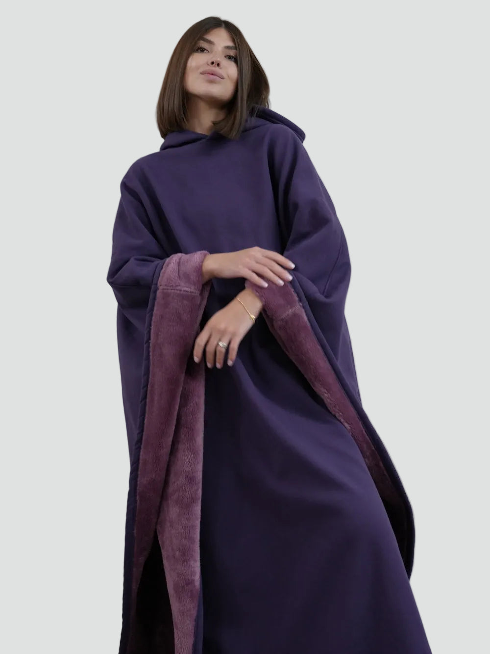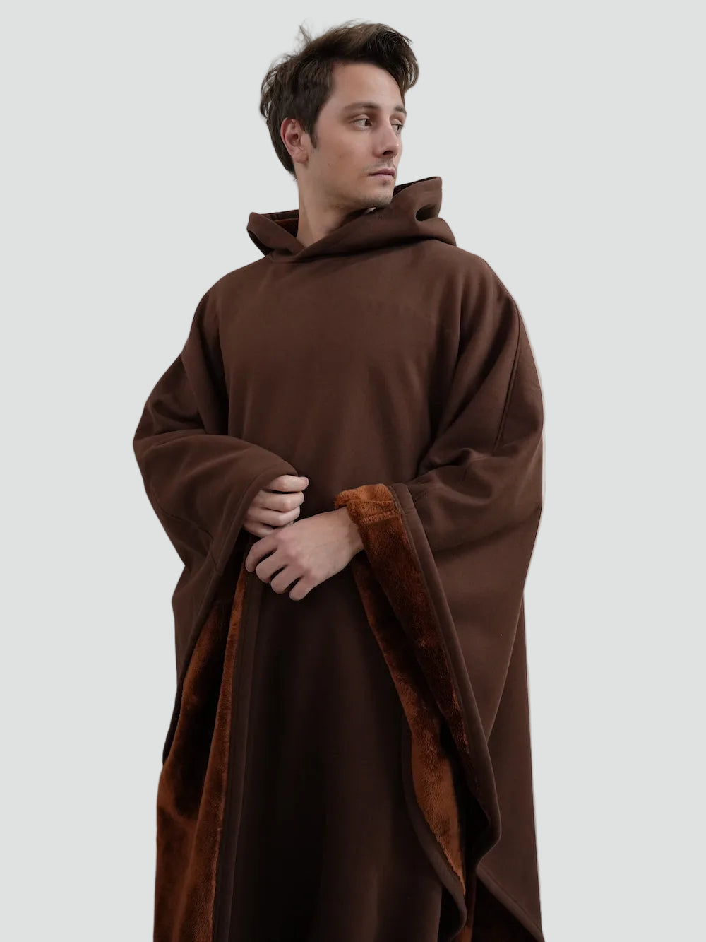 Ten ciepły koc ponczo z kapturem unisex to idealny towarzysz na chłodne wieczory, kiedy chcesz po prostu otulić się czymś miękkim i odpocząć. Z jednej strony gładki materiał, z drugiej supermiękki polar tworzą przytulny kokon, w którym możesz leżeć na kanapie, czytać książkę albo oglądać serial. Oversize’owy krój z wygodnym kapturem sprawia, że świetnie sprawdzi się zarówno w domu, jak i na tarasie, kempingu czy podczas zimowych wyjazdów.