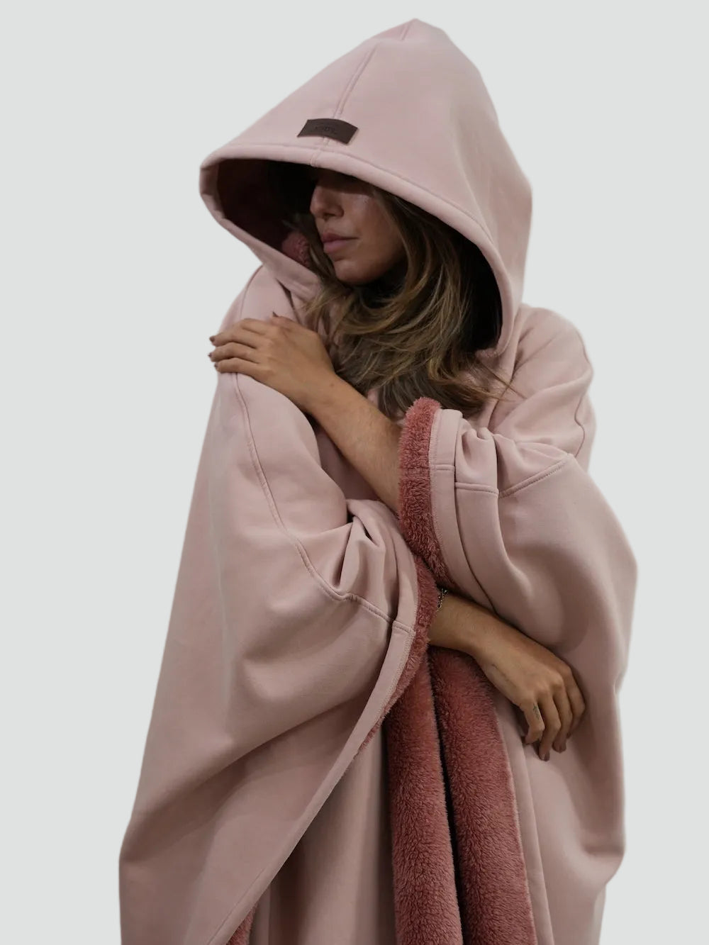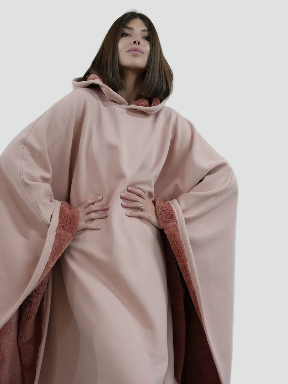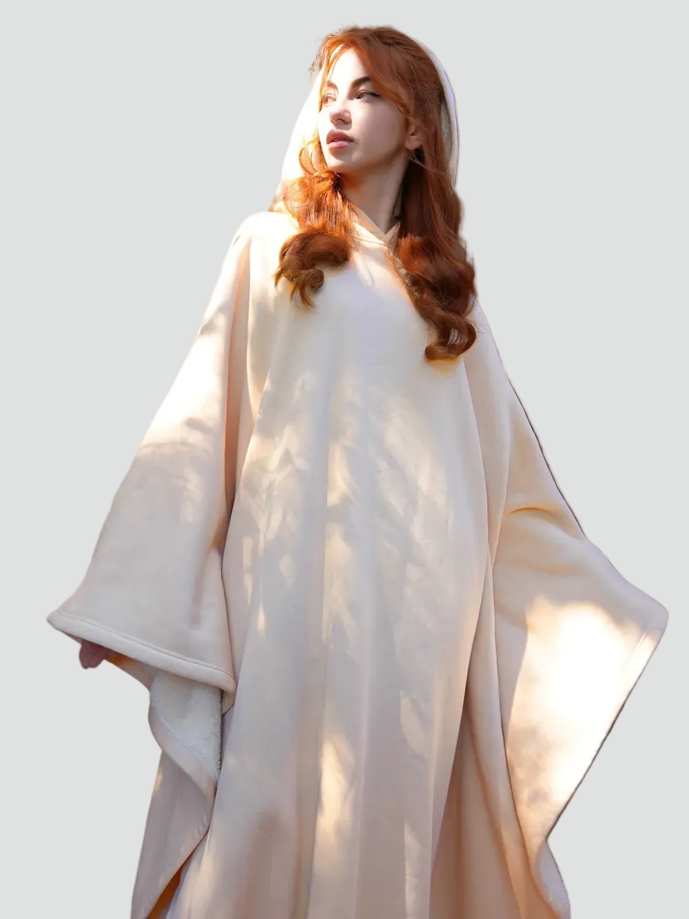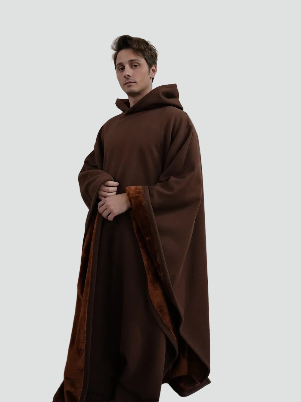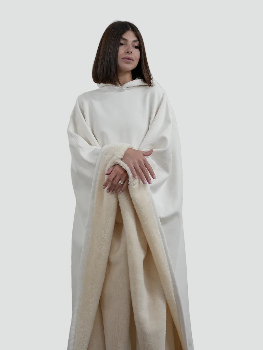 Ten ciepły koc ponczo z kapturem unisex to idealny towarzysz na chłodne wieczory, kiedy chcesz po prostu otulić się czymś miękkim i odpocząć. Z jednej strony gładki materiał, z drugiej supermiękki polar tworzą przytulny kokon, w którym możesz leżeć na kanapie, czytać książkę albo oglądać serial. Oversize’owy krój z wygodnym kapturem sprawia, że świetnie sprawdzi się zarówno w domu, jak i na tarasie, kempingu czy podczas zimowych wyjazdów.