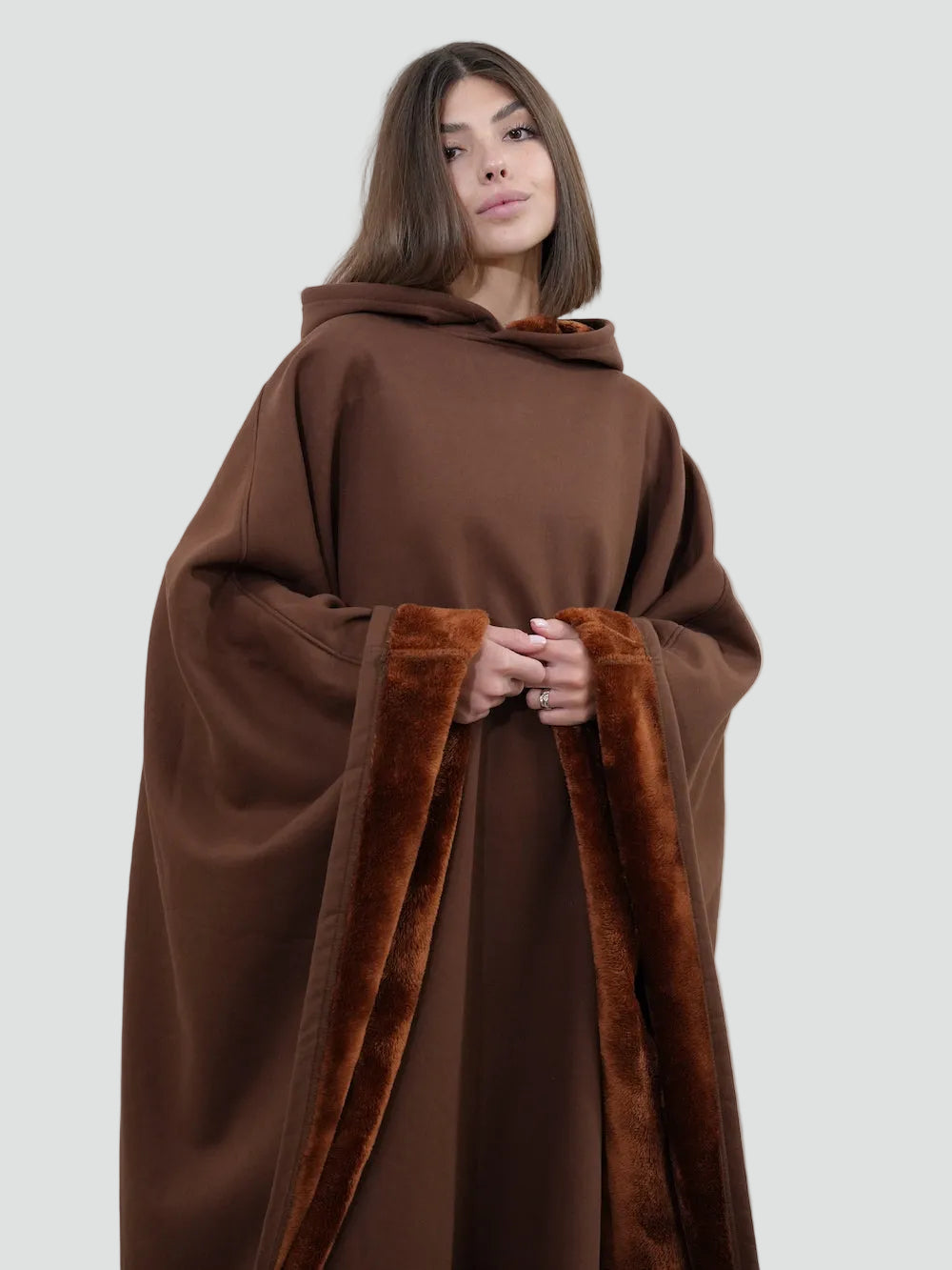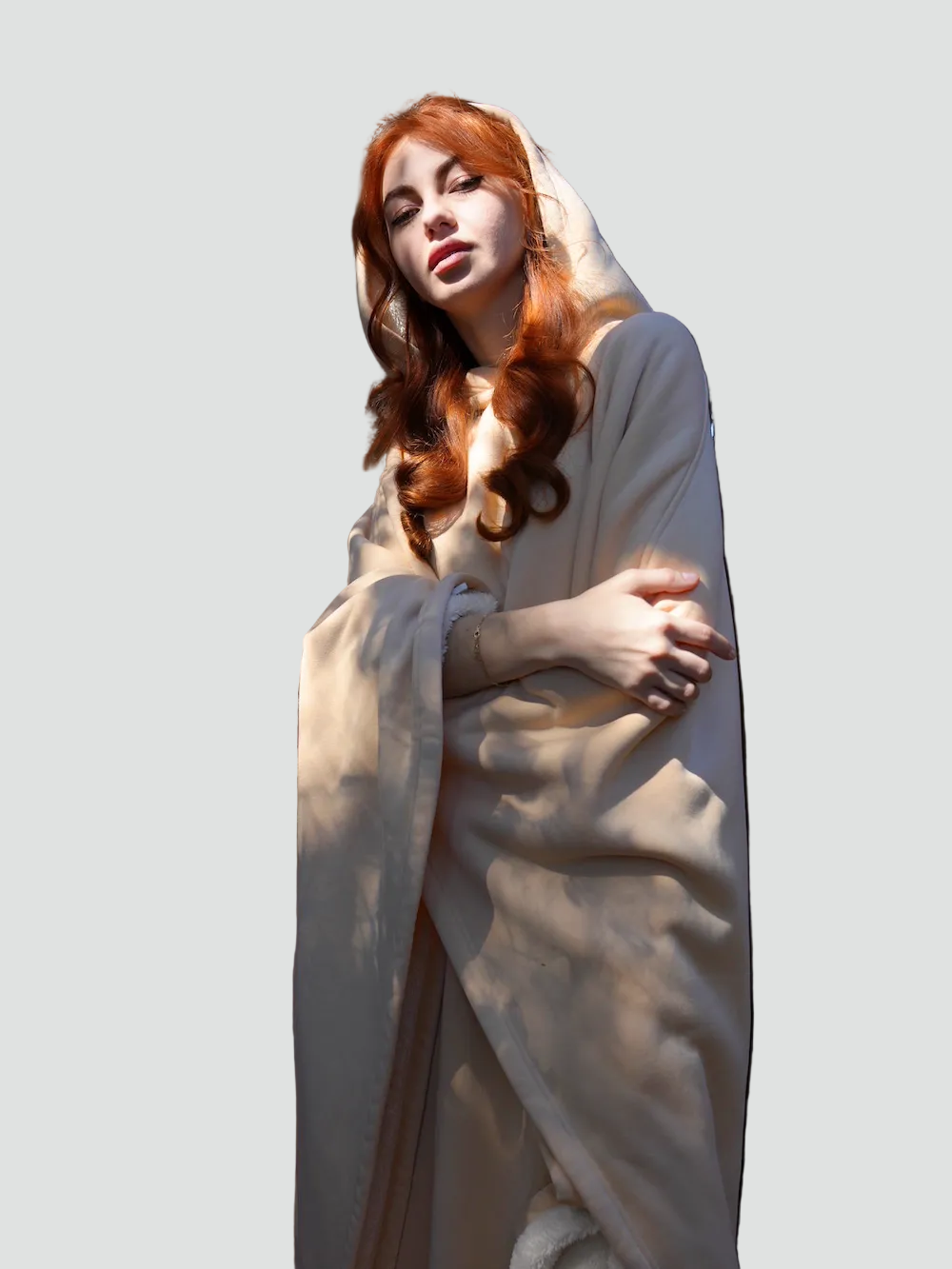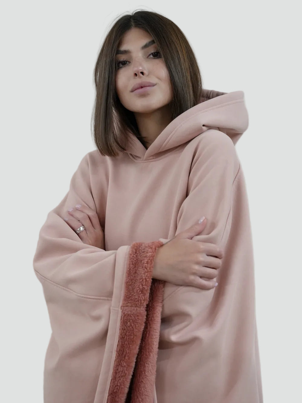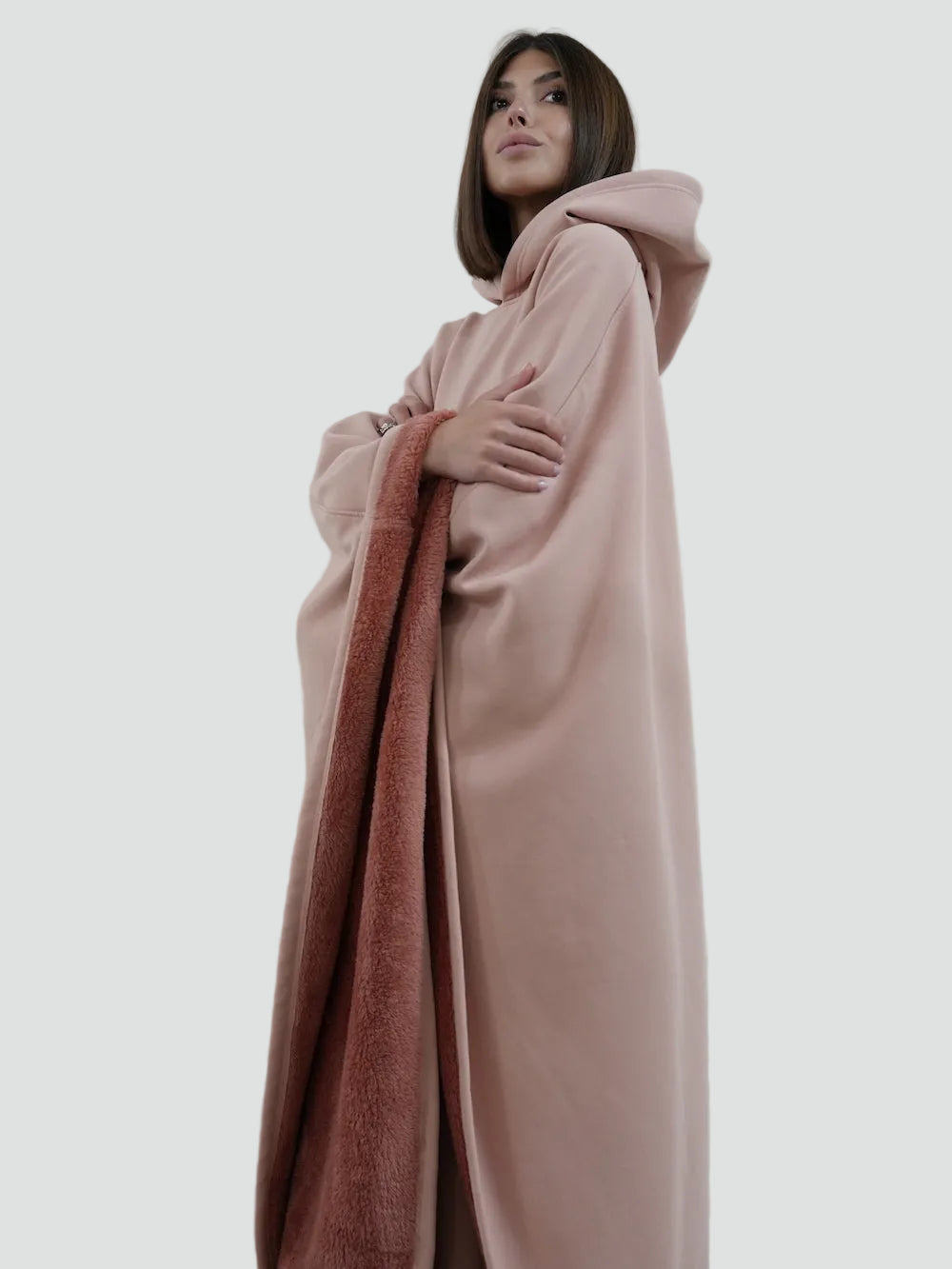 Ten ciepły koc ponczo z kapturem unisex to idealny towarzysz na chłodne wieczory, kiedy chcesz po prostu otulić się czymś miękkim i odpocząć. Z jednej strony gładki materiał, z drugiej supermiękki polar tworzą przytulny kokon, w którym możesz leżeć na kanapie, czytać książkę albo oglądać serial. Oversize’owy krój z wygodnym kapturem sprawia, że świetnie sprawdzi się zarówno w domu, jak i na tarasie, kempingu czy podczas zimowych wyjazdów.