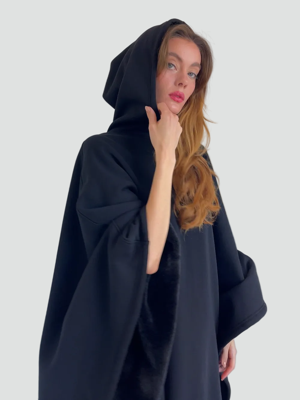 • Krój poncza z obszernym kapturem zapewnia swobodę ruchu i dodatkowe ciepło wokół głowy i szyi