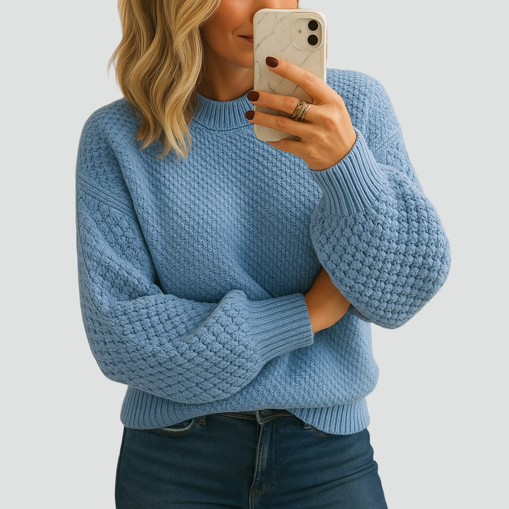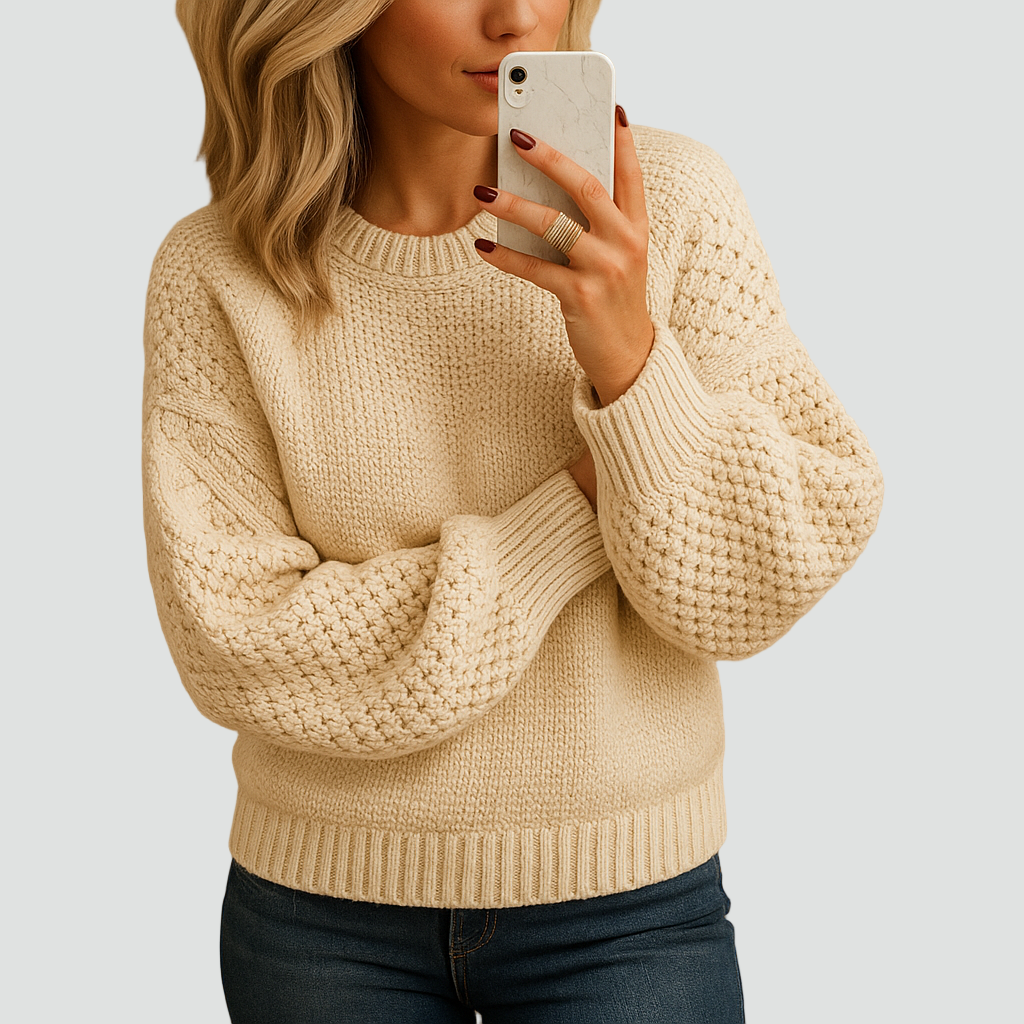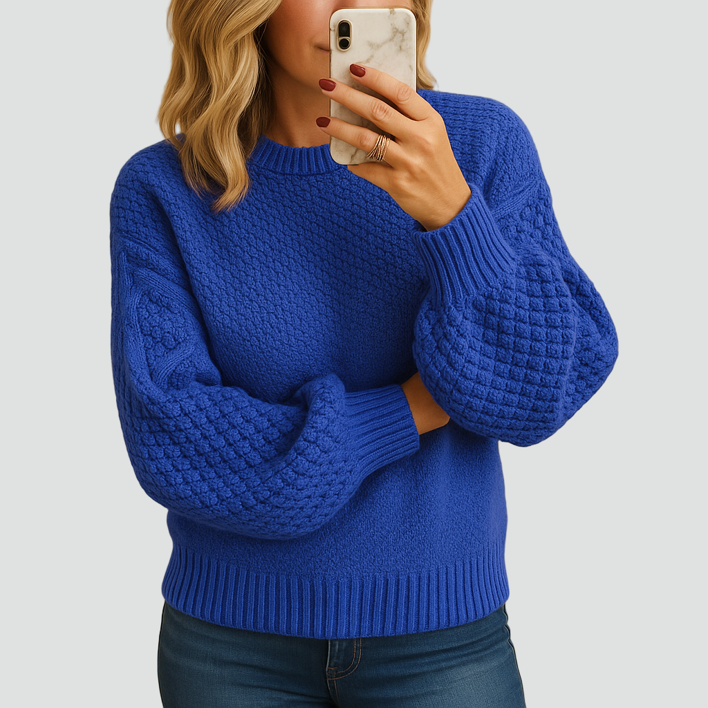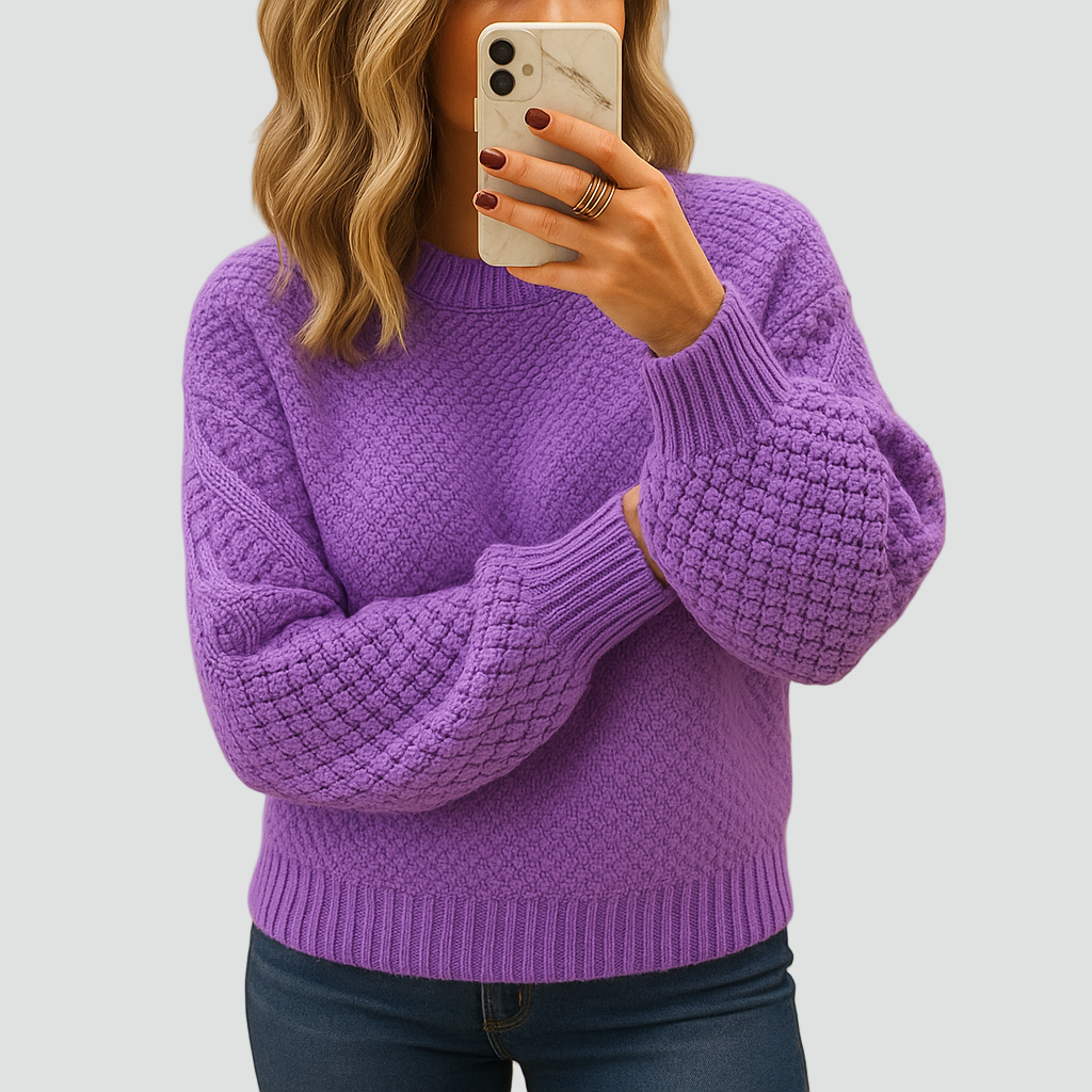 Ten ciepły zimowy dzianinowy sweter dla kobiet z grubym splotem to idealny wybór na chłodne dni. Wykonany z miękkiej, przyjemnej w dotyku przędzy, otula ciepłem i zapewnia pełen komfort noszenia. Gruby, strukturalny splot nadaje mu wyjątkowego charakteru, a lekko luźny krój i elastyczne ściągacze przy mankietach i u dołu gwarantują wygodę przez cały dzień.