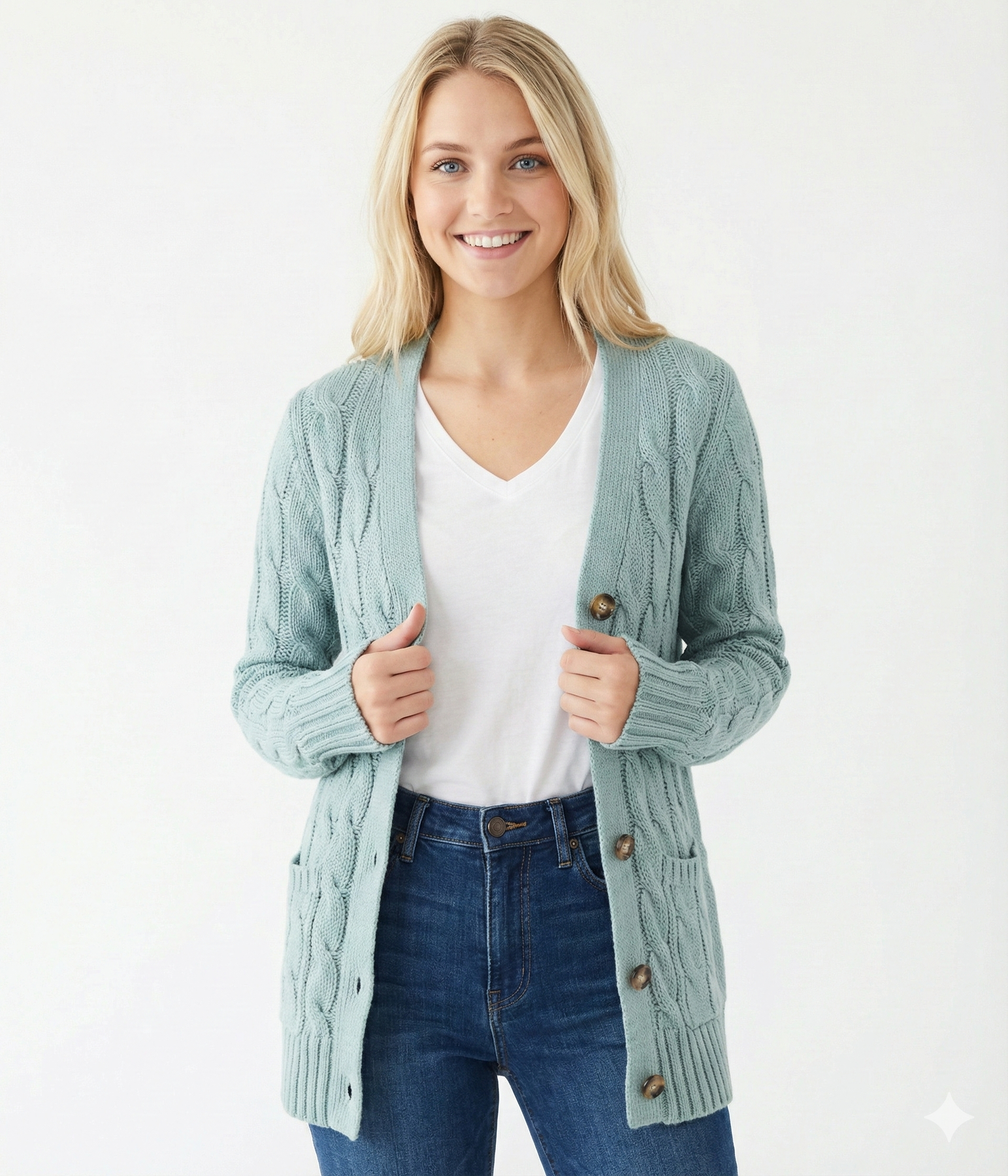 Miękki ciepły damski kardigan zapinany na guziki