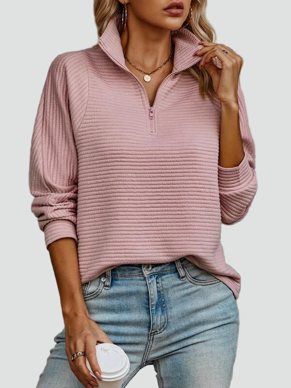 Prążkowana bluza damska z półgolfem na zamek