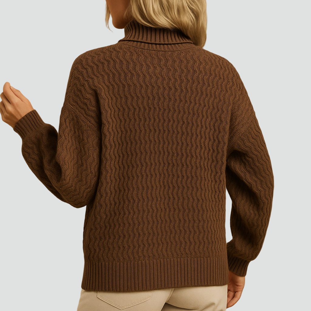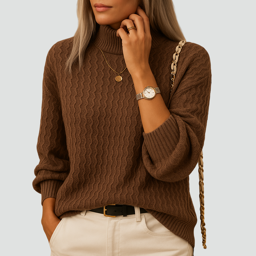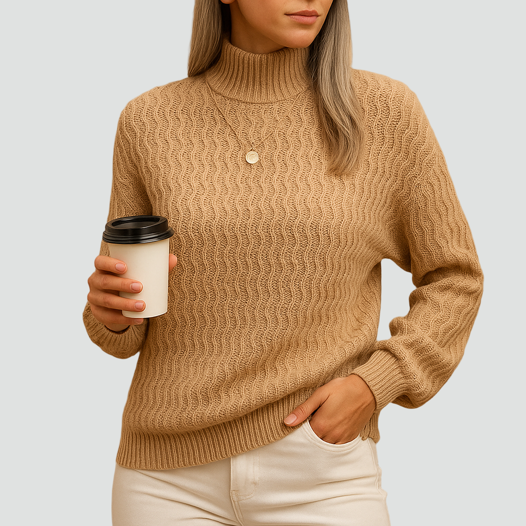 - Wysoki golf podkreśla szyję i chroni przed chłodem