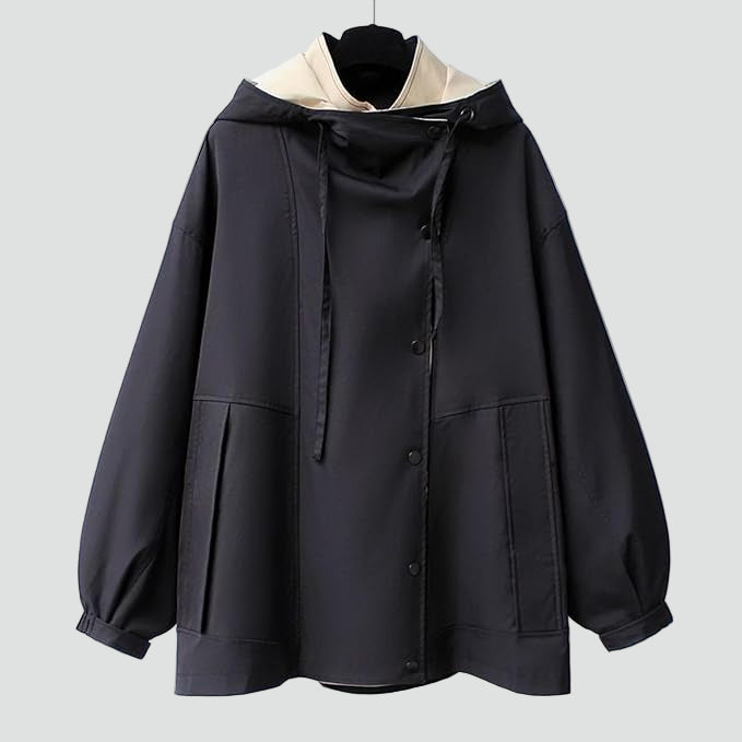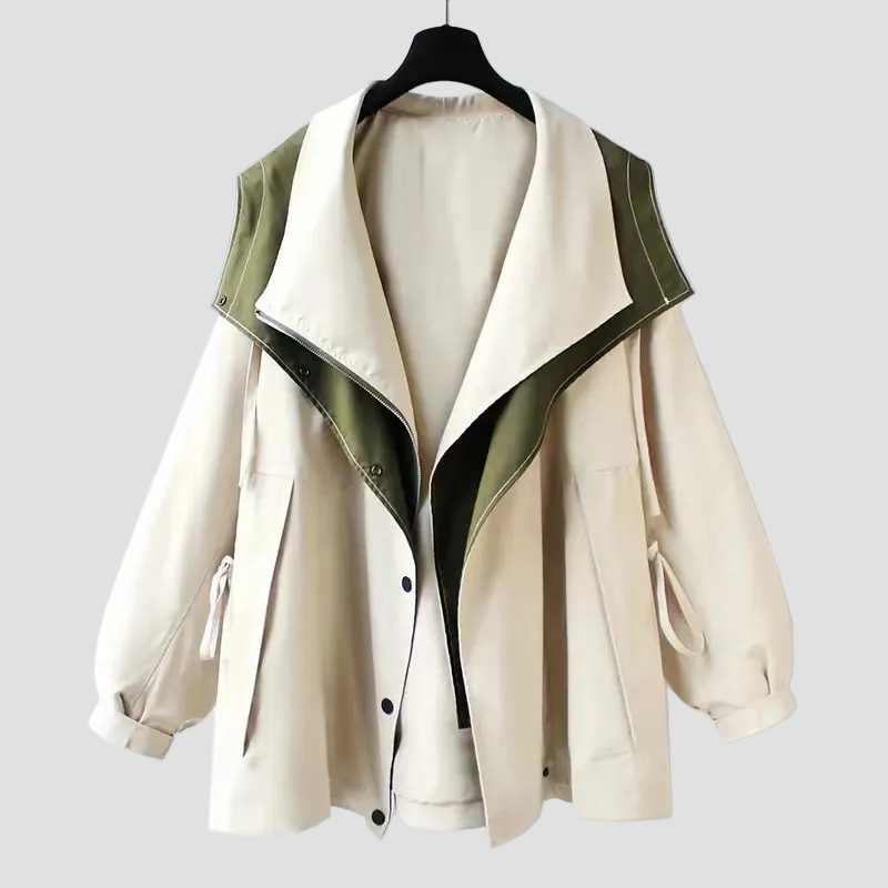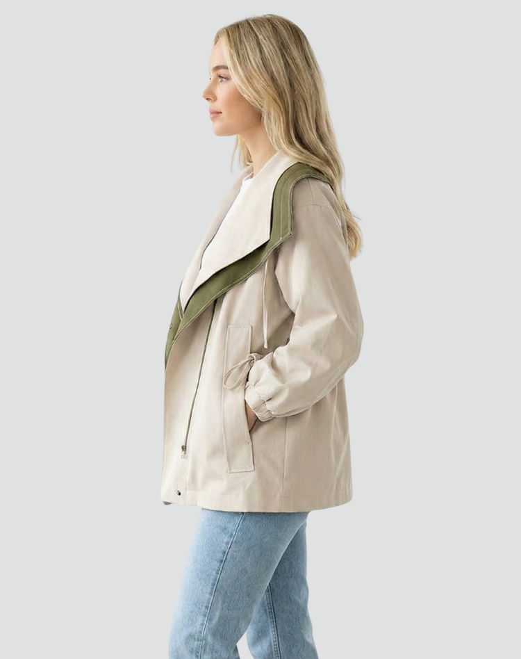 Ta lekka parka z dużym kołnierzem to idealna kurtka na przejściowe dni, kiedy pogoda lubi się zmieniać. Swobodny krój pozwala założyć pod spód sweter lub bluzę, a szeroki kołnierz po zapięciu działa jak kaptur i dobrze osłania szyję. Sprawdzi się na spacer, do pracy i na codzienne załatwianie spraw w mieście.