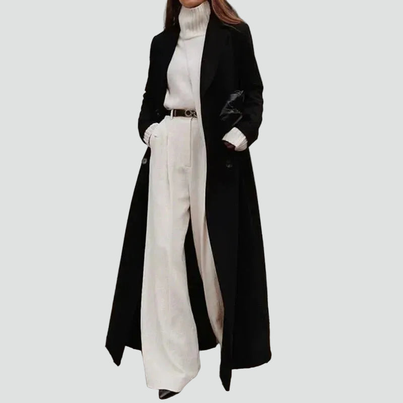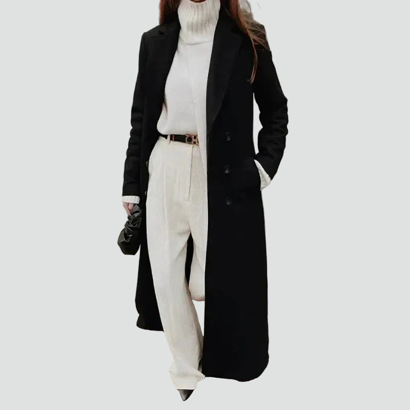 Klasyczny długi płaszcz wełniany damski dwurzędowy