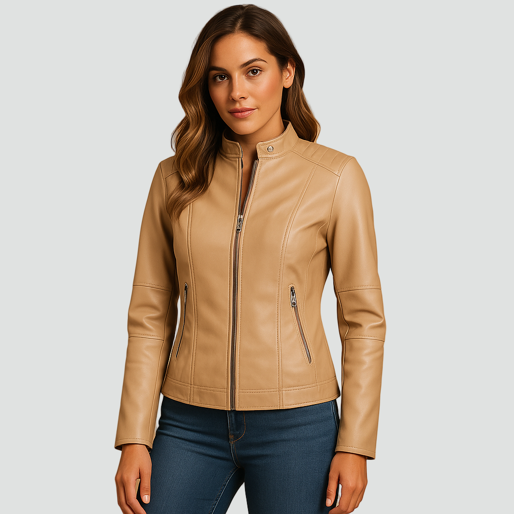 Stylowa kurtka typu biker to ponadczasowy element garderoby, który doda charakteru każdej stylizacji. Wykonana z wysokiej jakości materiału o efekcie skóry, zachwyca eleganckim połyskiem i dopasowanym krojem. Zapięcie na suwak oraz stójka z napą podkreślają nowoczesny, minimalistyczny design.