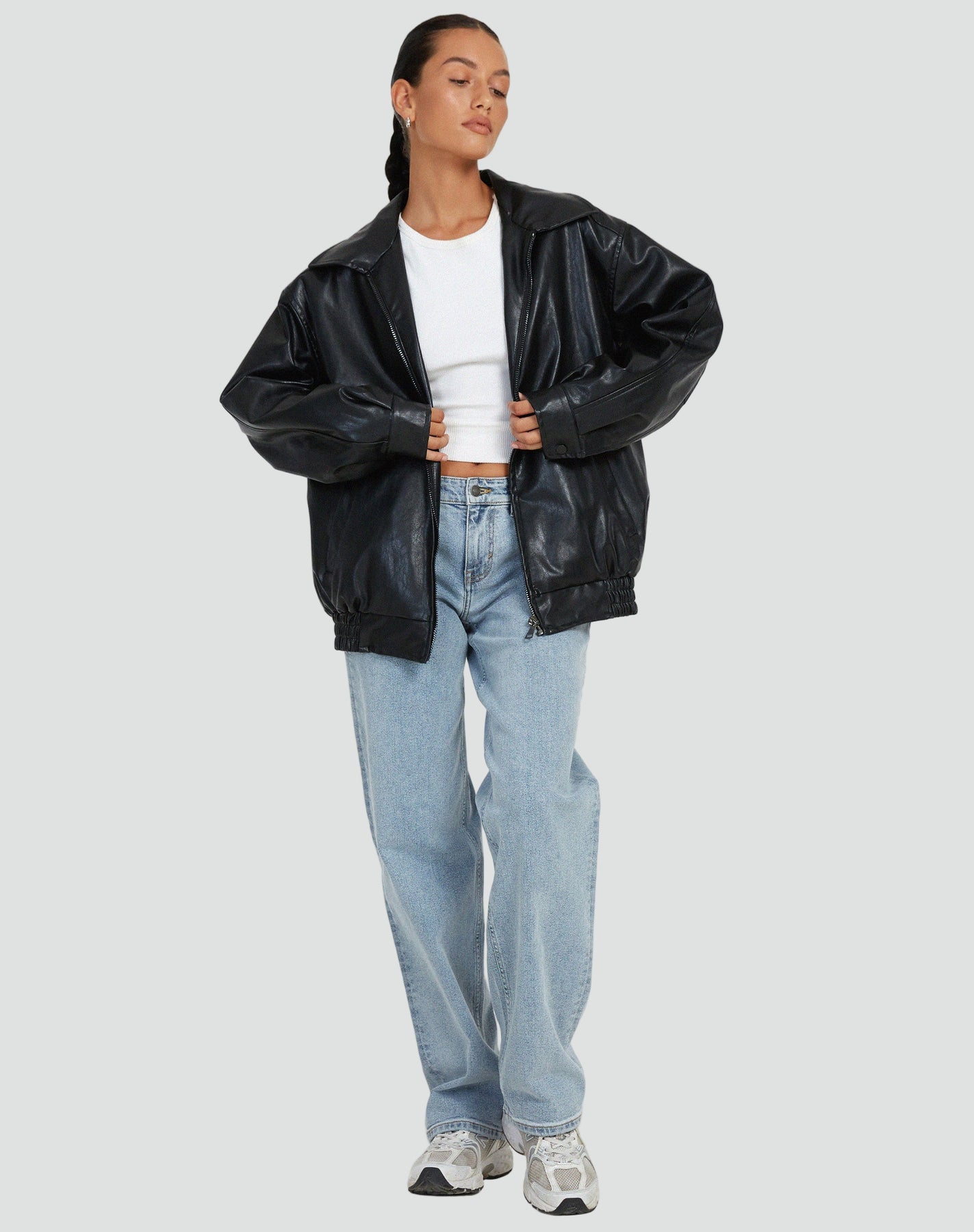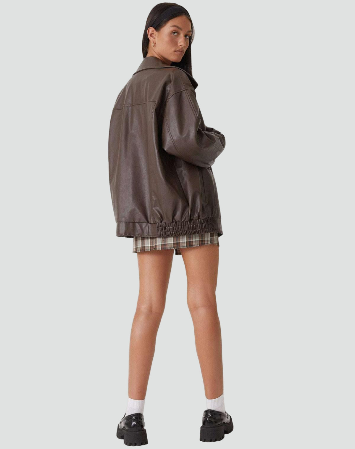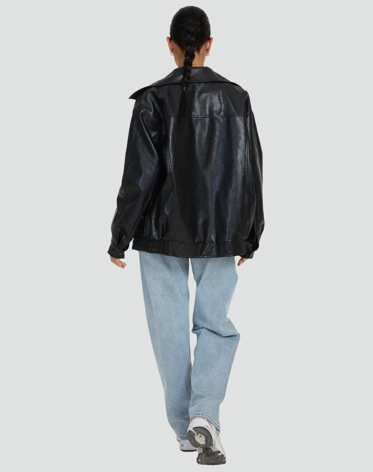Oversize damska kurtka z ekoskóry zapinana na zamek