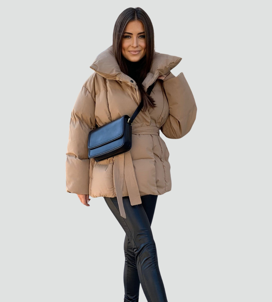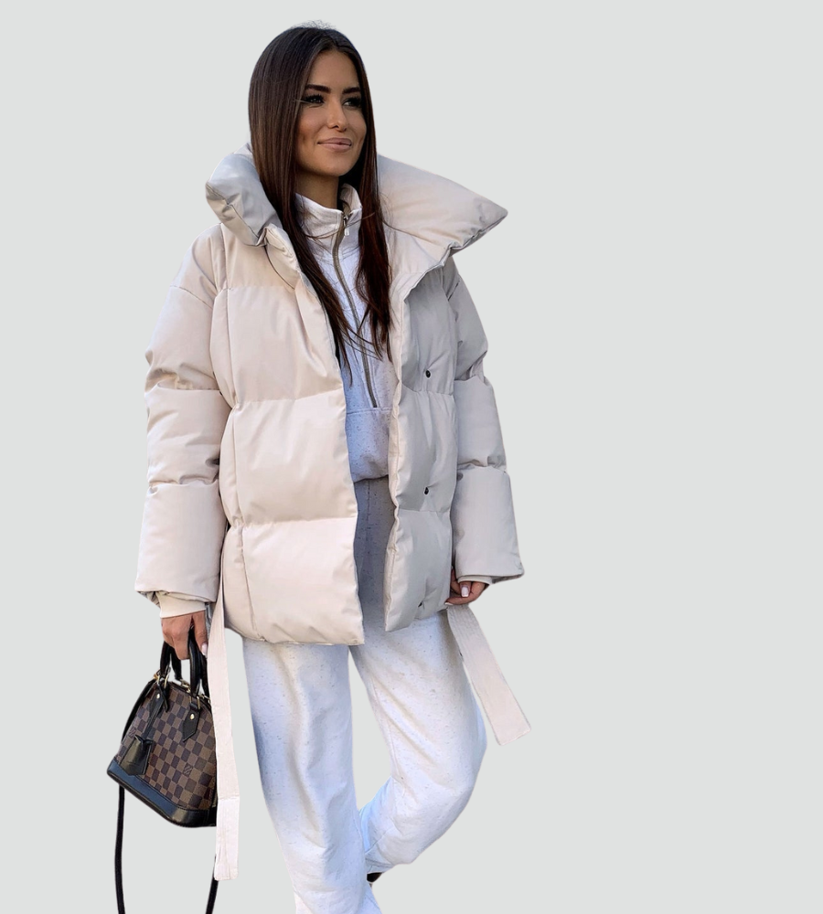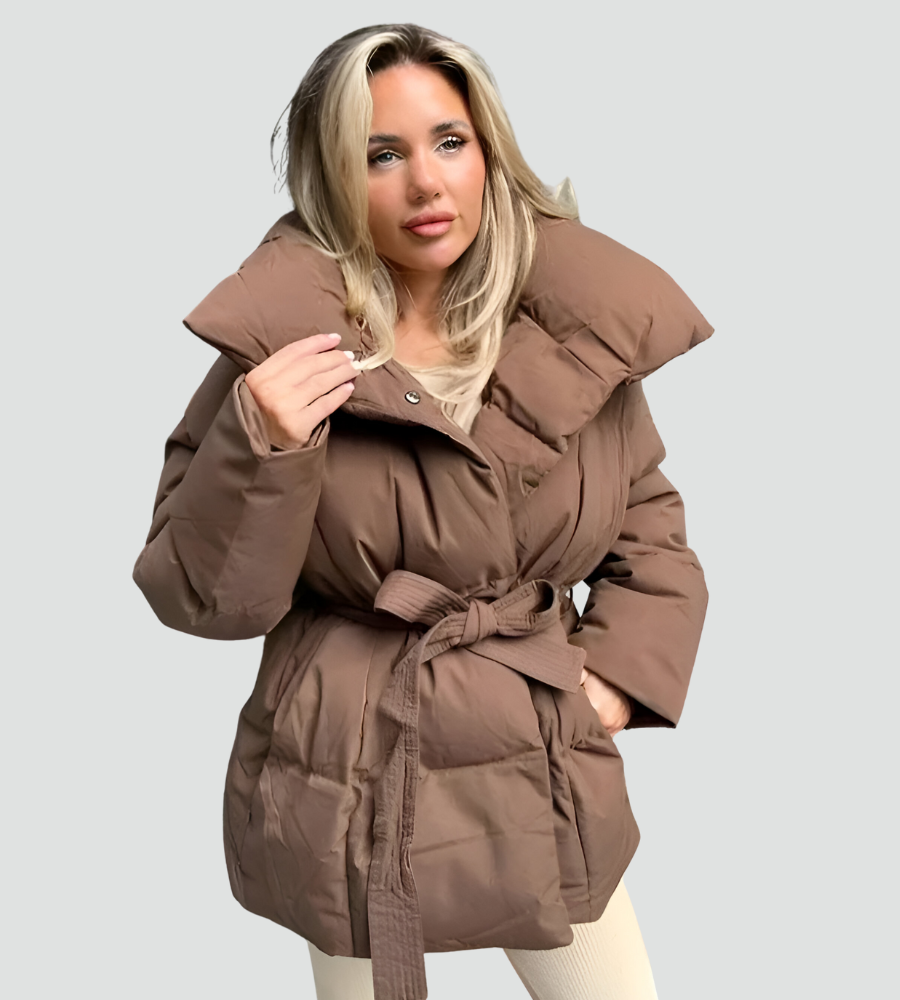 Ta pikowana puchowa kurtka zimowa to model, który naprawdę grzeje, a przy tym wygląda nowocześnie. Krótsza, lekko oversize’owa forma świetnie łączy się ze spodniami z wysokim stanem, a pasek w talii pozwala w kilka sekund nadać sylwetce bardziej kobiecy kształt. Wysoki kołnierz przyjemnie otula szyję i sprawdza się w wietrzne, chłodne dni – idealna na codzienne wyjścia do pracy, na spacer czy szybkie załatwianie spraw w mieście.