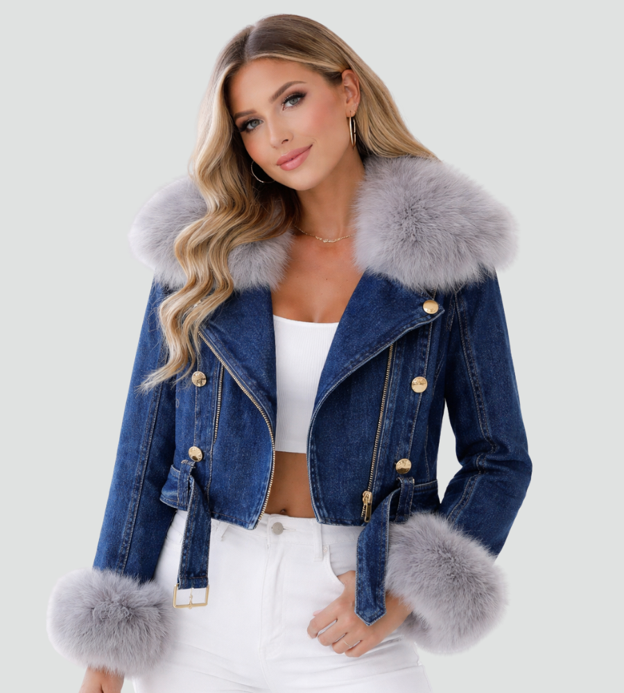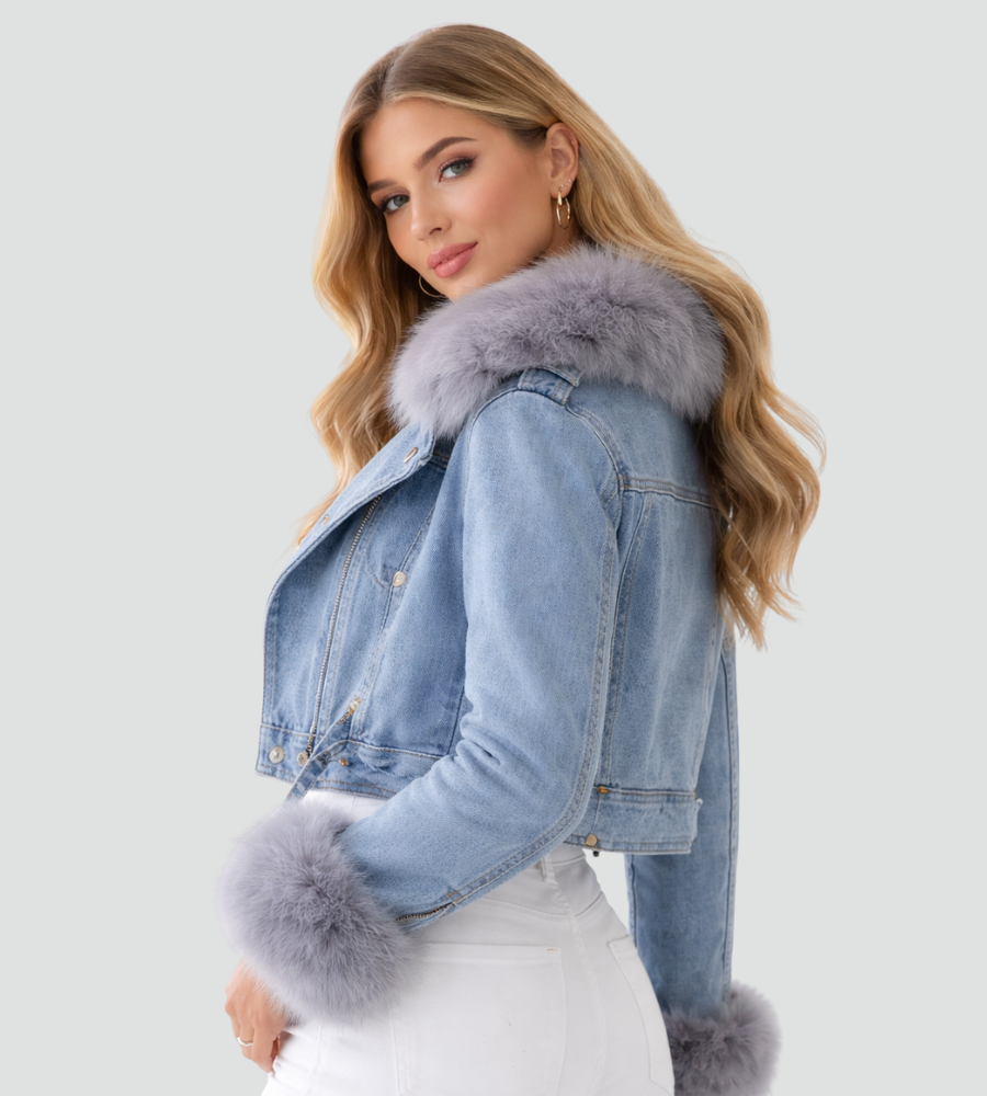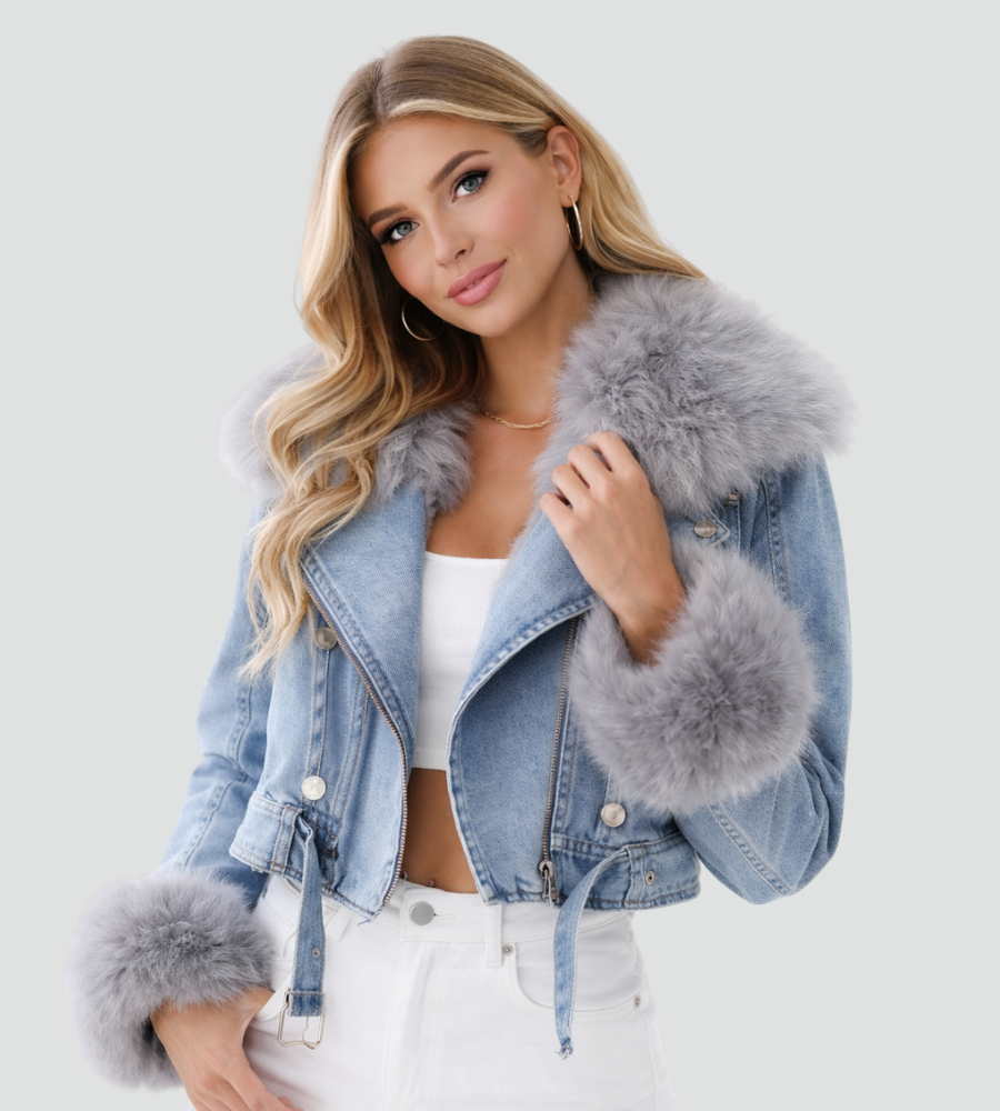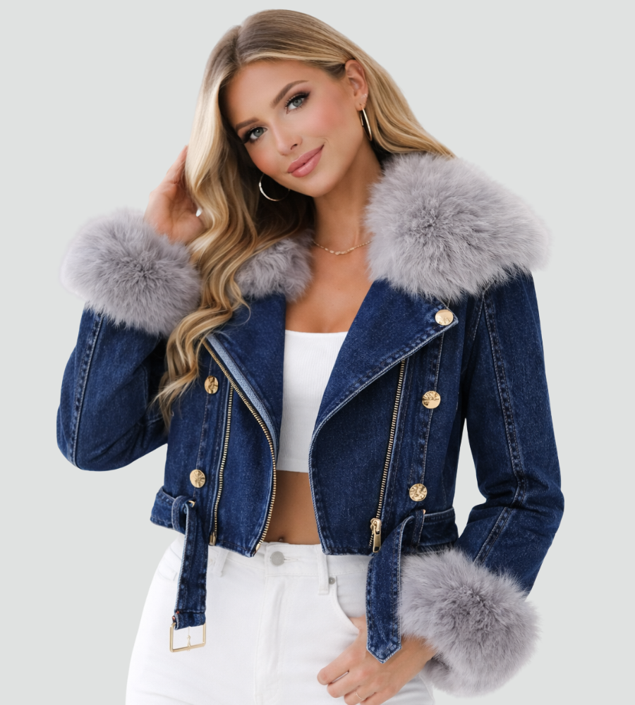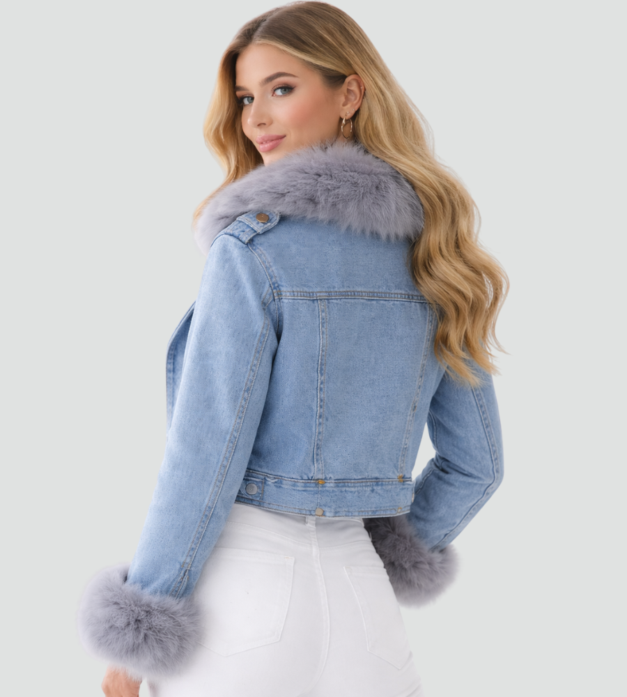 Stylowa damska kurtka jeansowa z futrzanym obszyciem