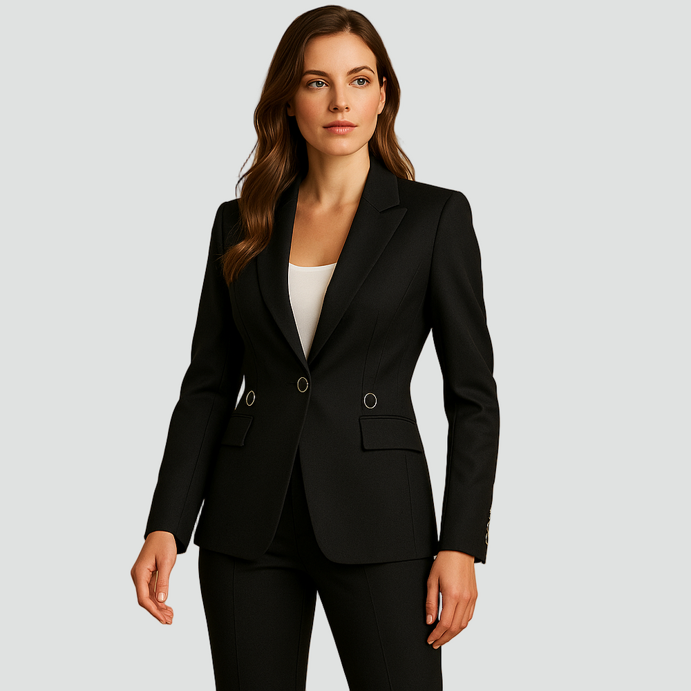 Elegancki biznesowy garnitur damski z marynarką i spodniami