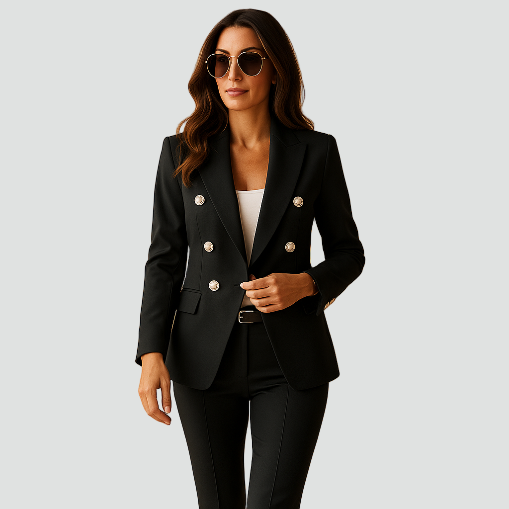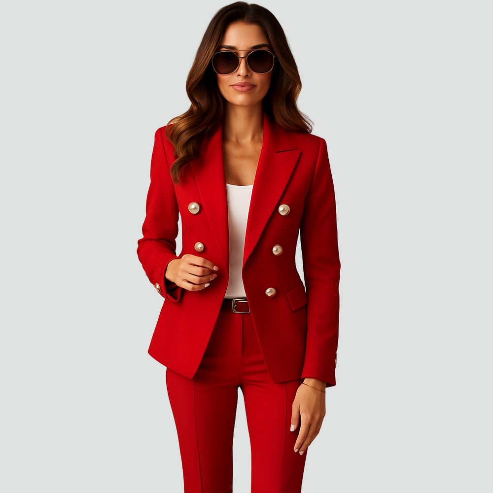 Elegancki garnitur biznesowy damski z dwurzędową marynarką i spodniami
