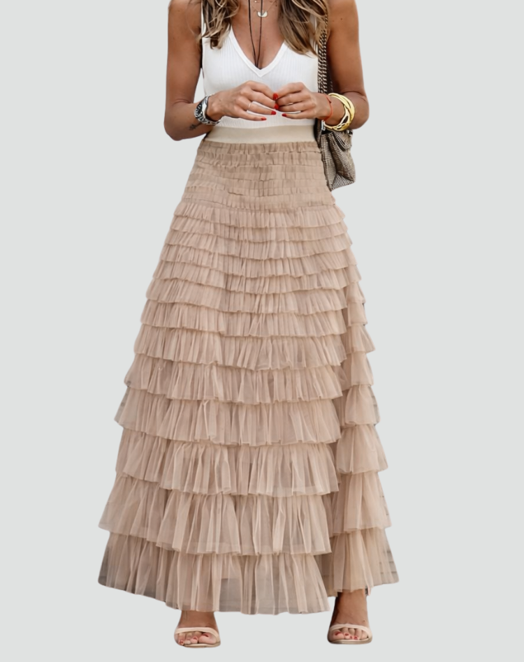 Elegancka tiulowa spódnica maxi damska z elastyczną talią