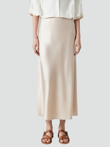 Elegancka damska satynowa spódnica midi z wysokim stanem