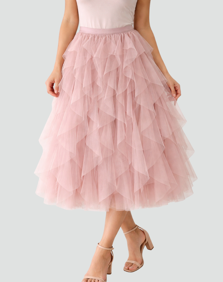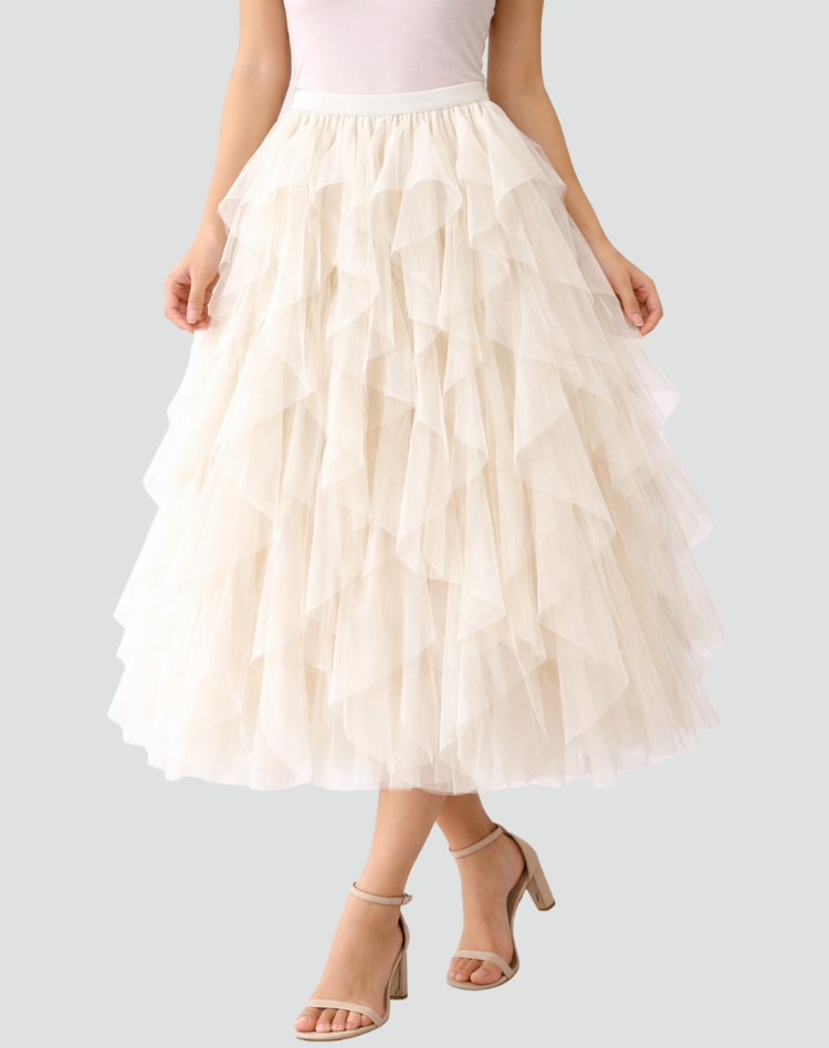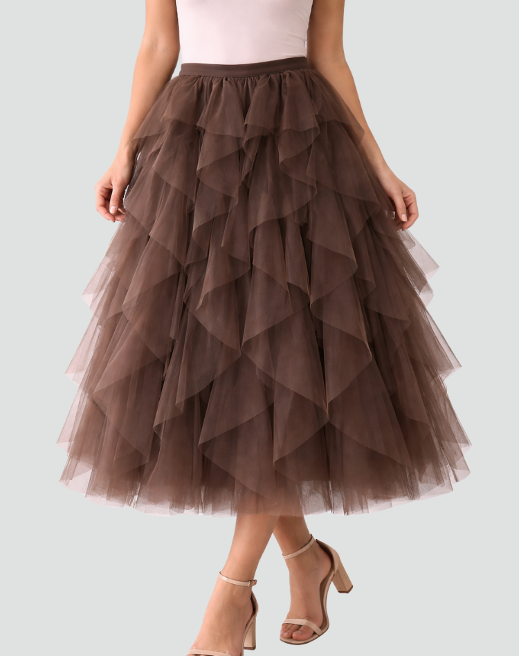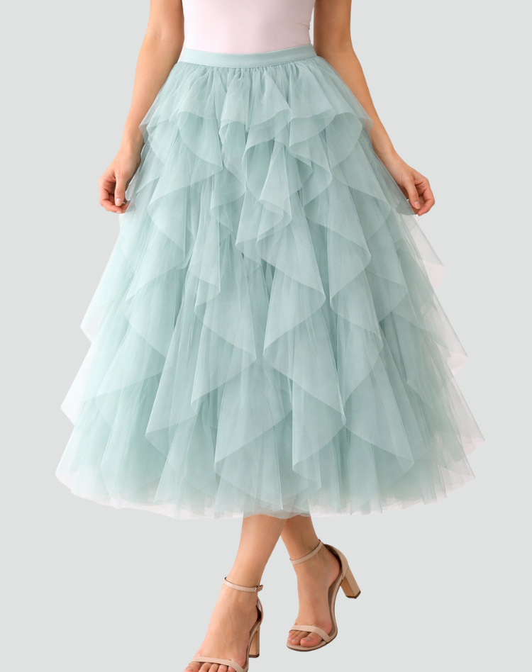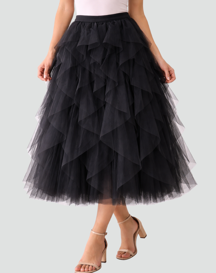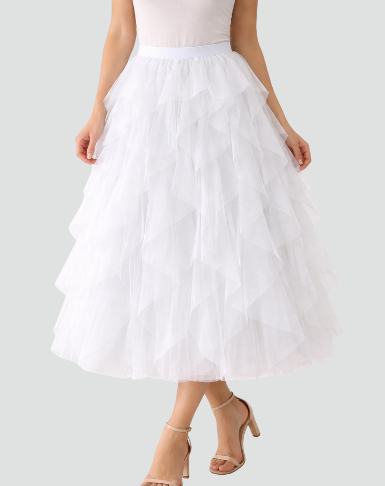 Elegancka spódnica tiulowa damska z falbanami midi