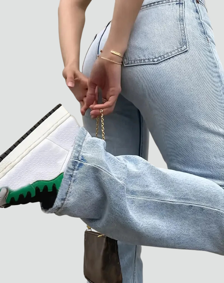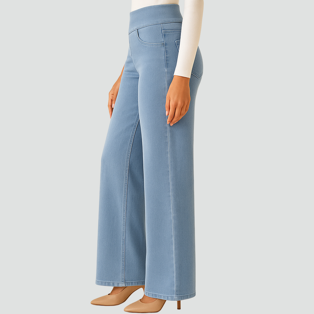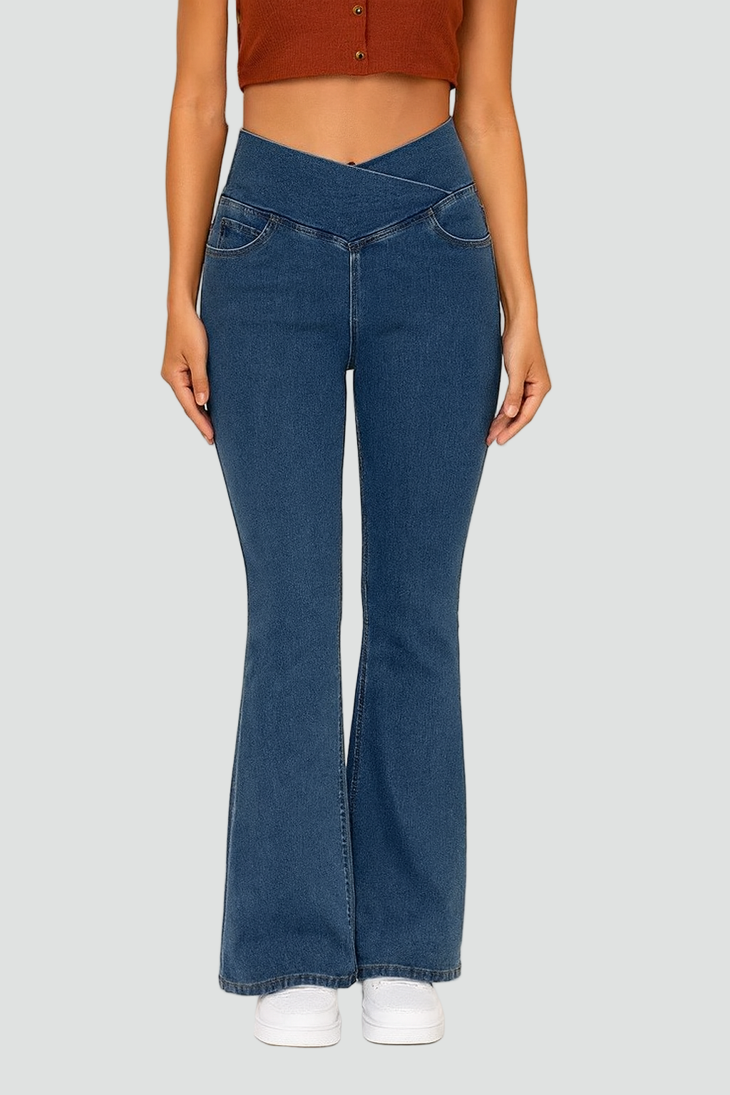 Elastyczne damskie jeansy dzwony z wysokim stanem
