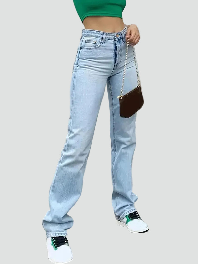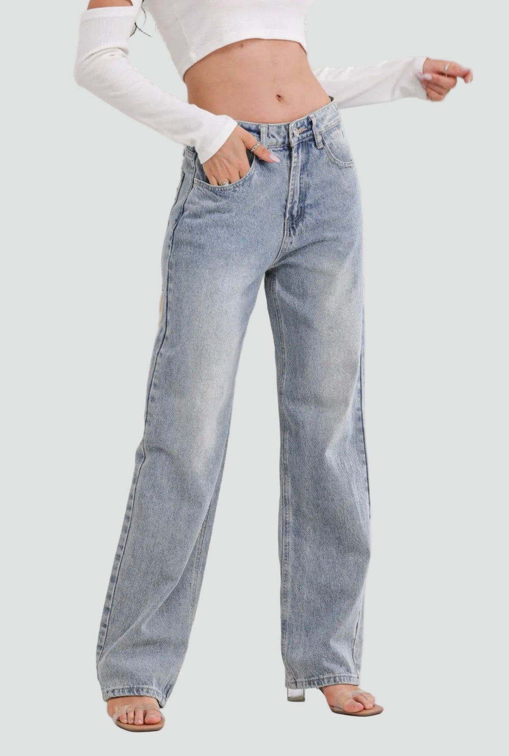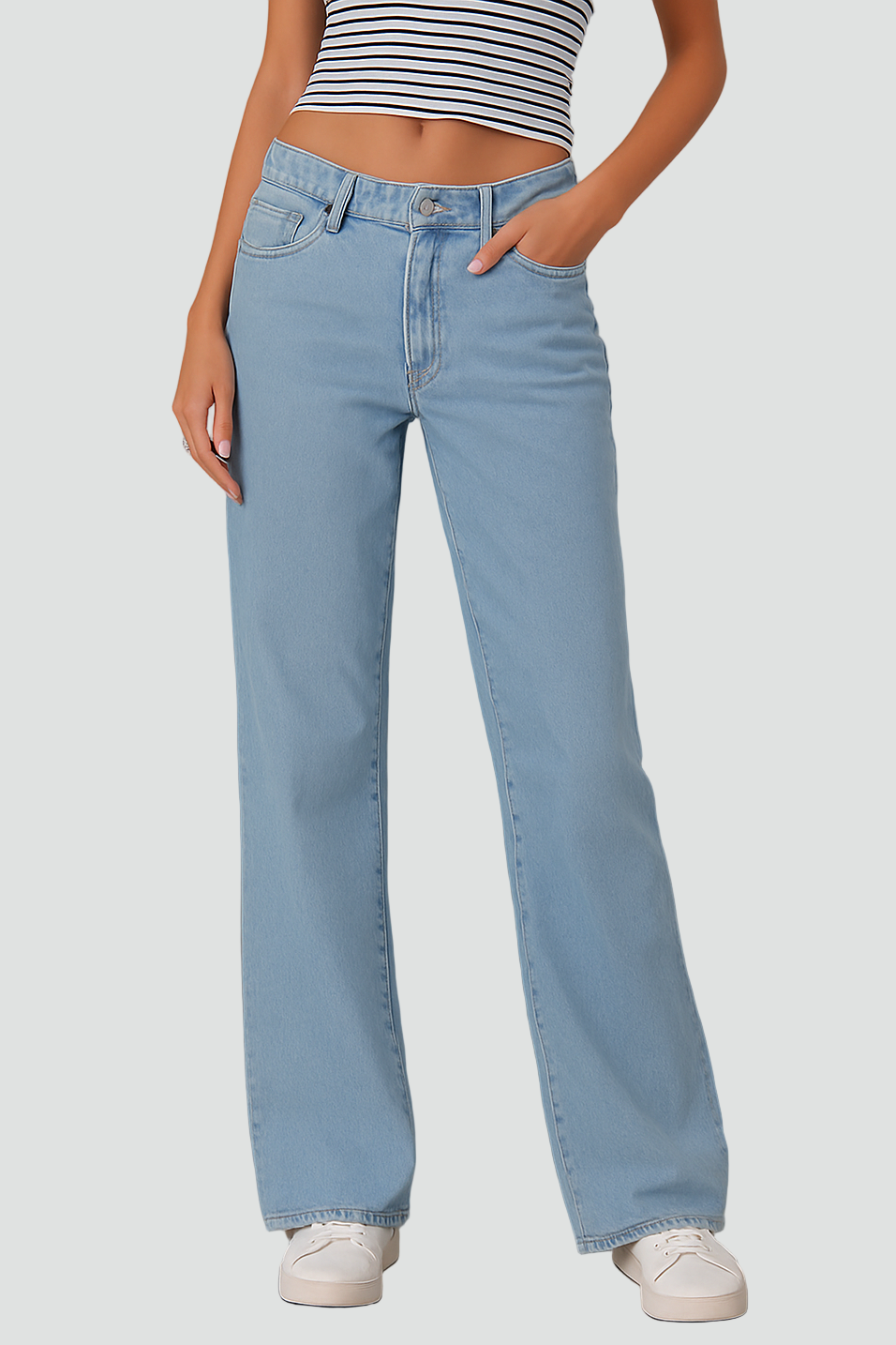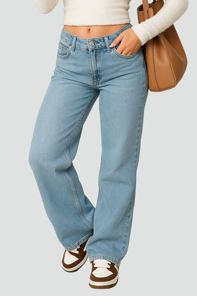 Jeansy damskie z niskim stanem i luźną prostą nogawką