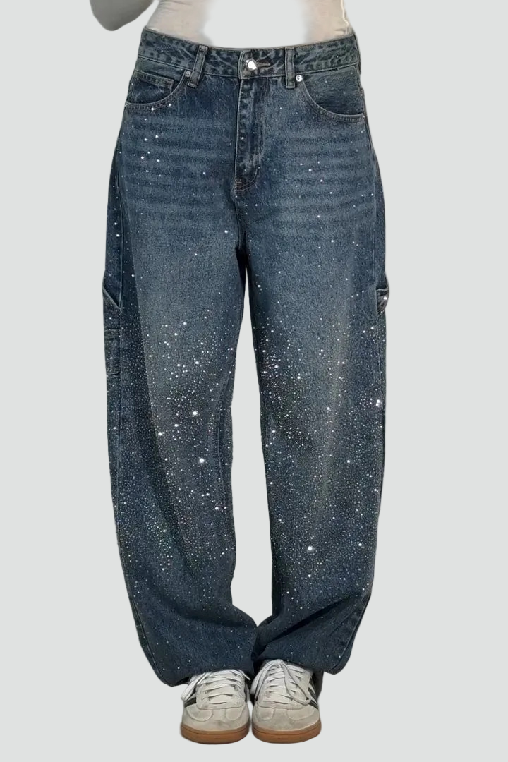 Jeansy z wysokim stanem z brokatowym efektem dla kobiet