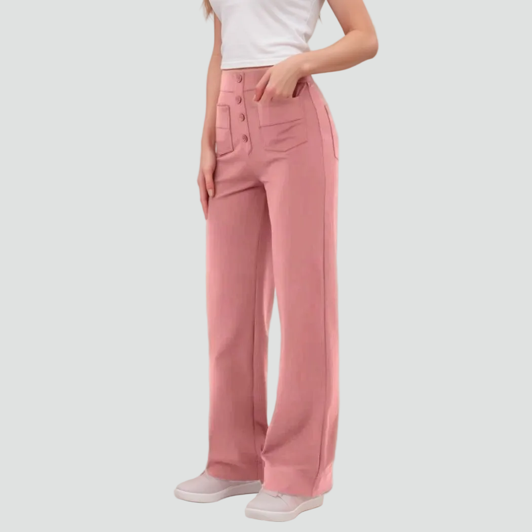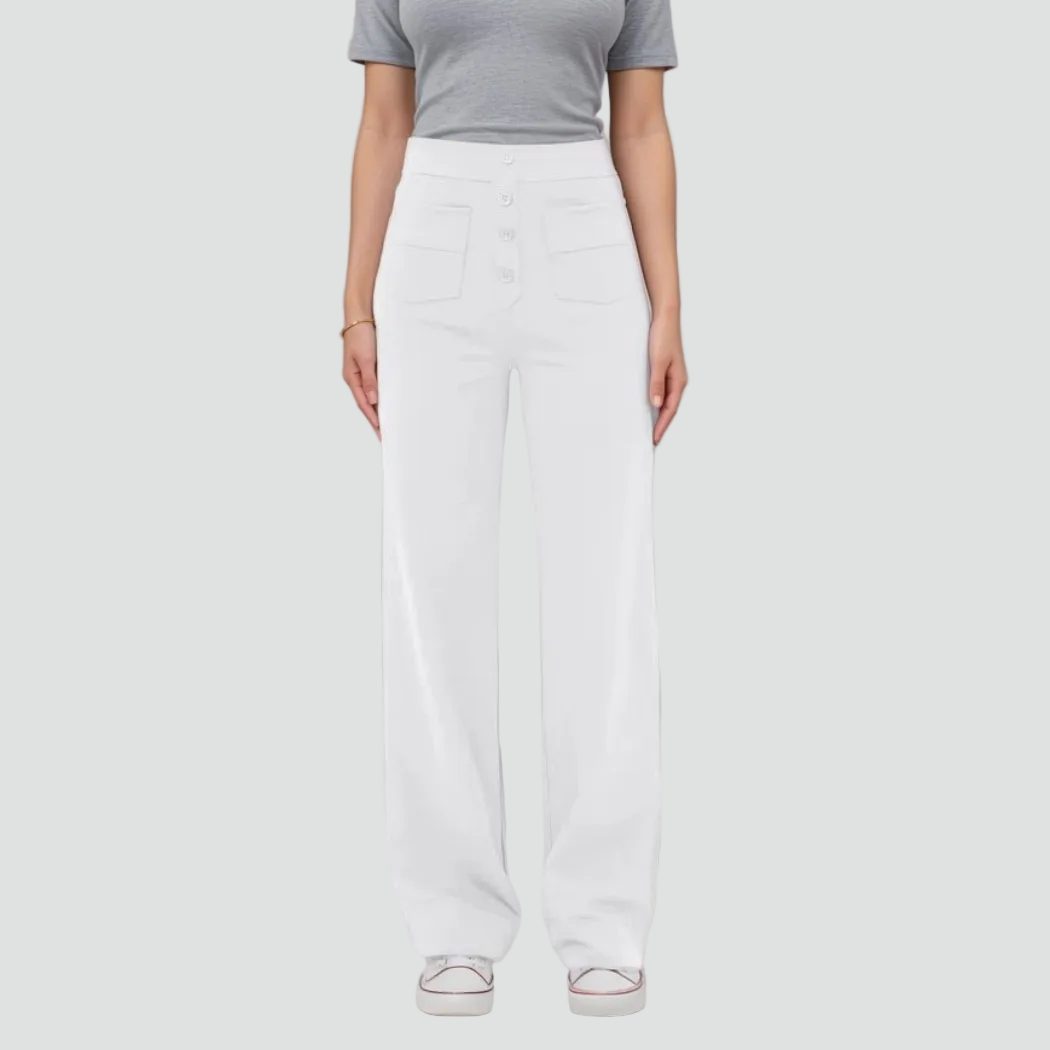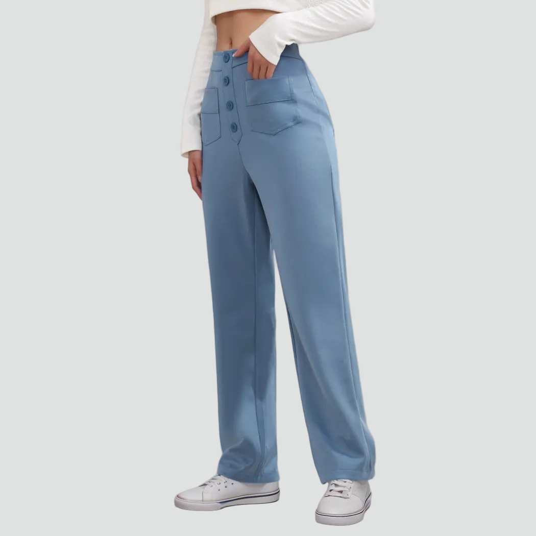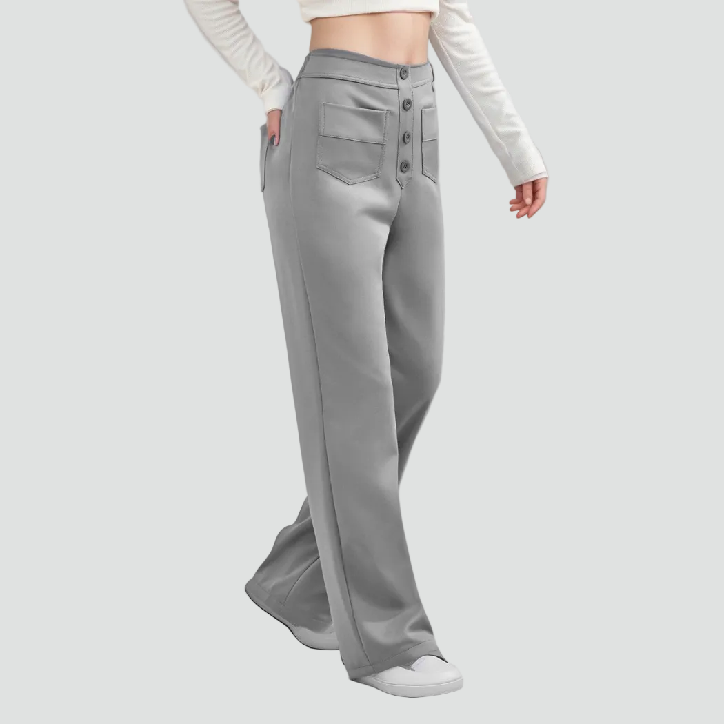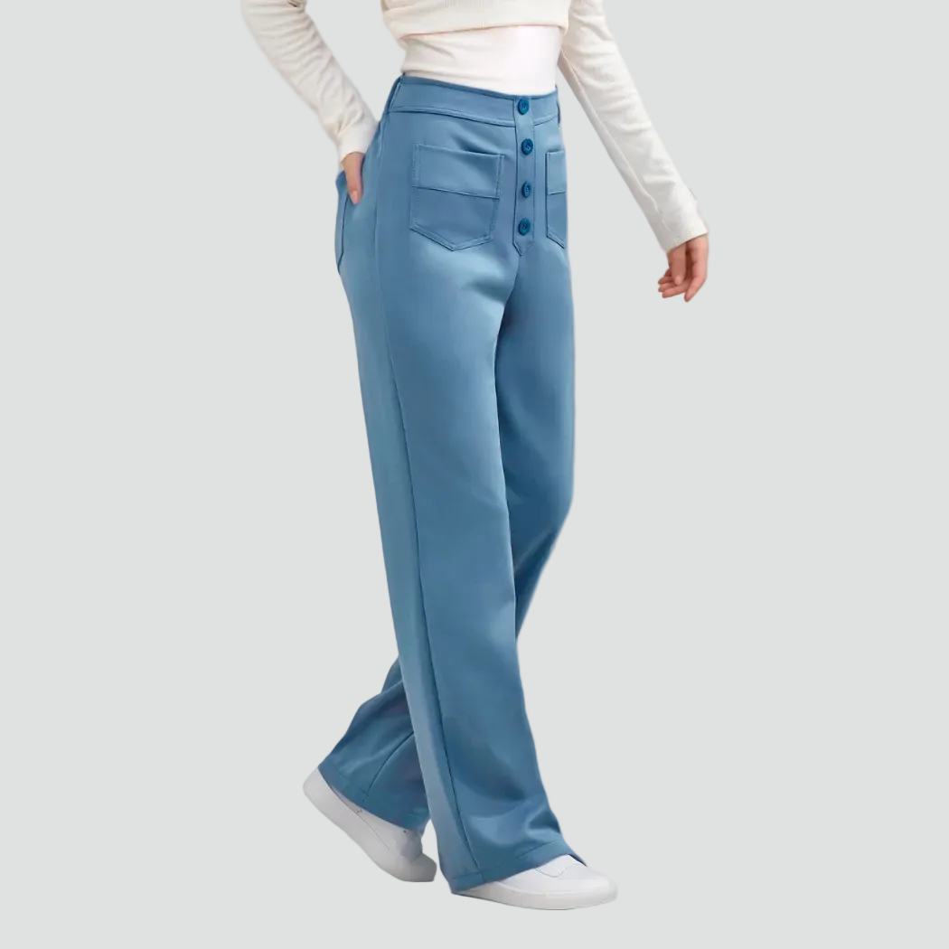 Damskie spodnie z wysokim stanem zapinane na guziki